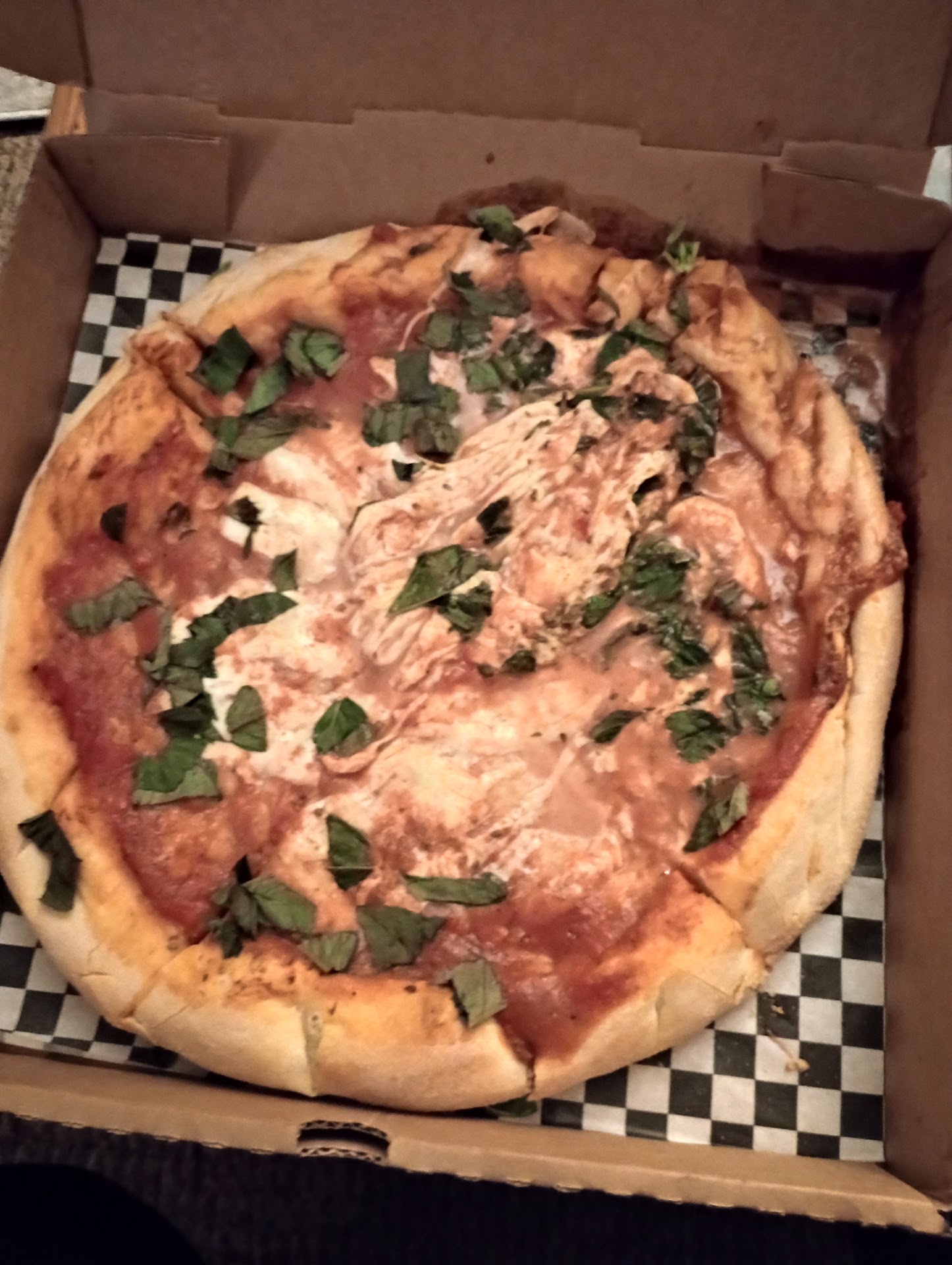 Apparently I'm supposed to be happy with this margarita pizza that's missing the classic toppings they boast and looks like it barely made it into the oven.