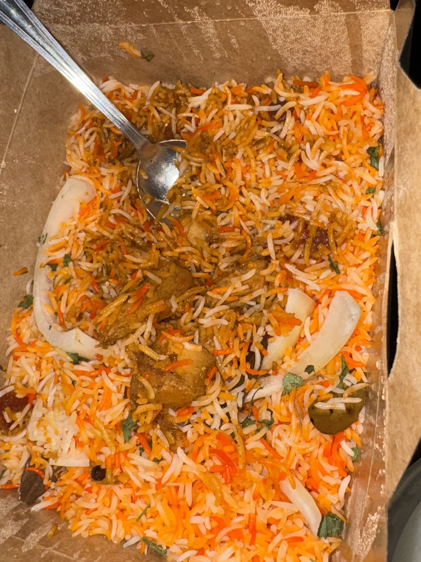 I got home, I couldn't wait to dish up because it all smelled AMAZING. I pulled the lid off the cup of masala and took a big dip with the naan. Instantly my mouth was on fire, like panic chugging milk spicy so I tried to put only a small amount of the liquid over way too much rice and even then I couldn't eat it.