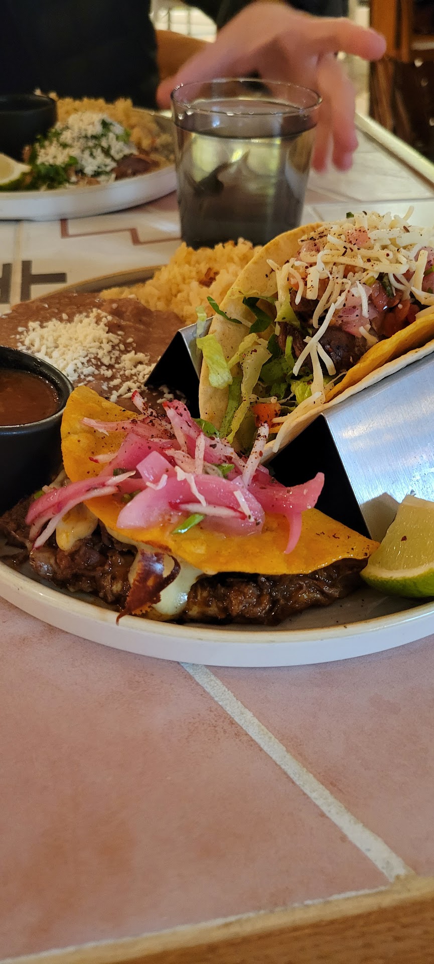 My wife ordered the mushroom and fried avocado with black beans and rice. I tasted the mushroom taco; OUT OF THIS WORLD. Really good.