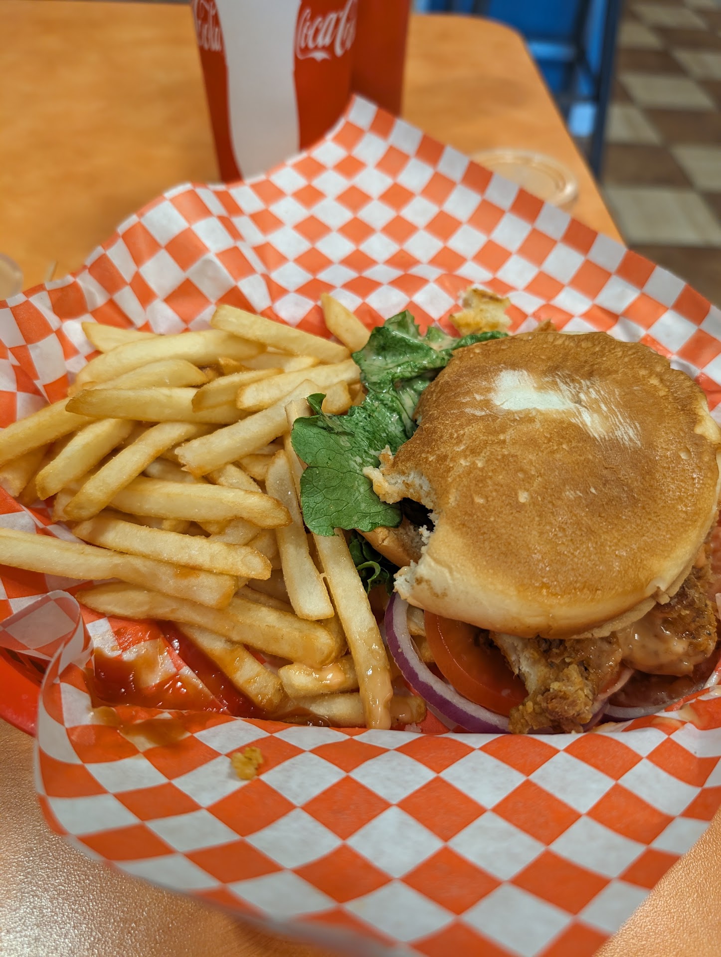 Read moreI placed an order online for dinner and decided to get the lamb burger and some fries. The order was ready within 15 minutes so it was pretty quick! The person who greeted us and gave us our food was kind and when my sister inquired about lettuce and tomato, they offered my sister some lettuce and tomatoes to take home for her burger. It was slightly confusing because the online ordering menu says it comes with it although it does not. The order was already bagged and folded closed when I got there for pick-up and I think that caused the bag to get a bit soggy.