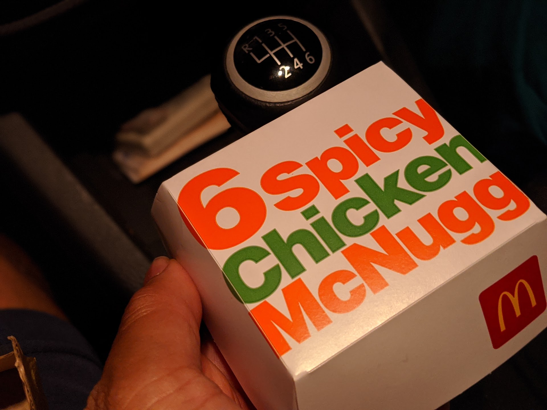 10 piece Chicken McNuggets & Cheeseburger- My, how times have changed! Supposedly 100% chicken breast, my senses tell me mechanically separated chicken with who knows what? I loved these as a kid, where I'd eat the breading first, then the chicken. Always with BBQ sauce. Now, my palate has become much more refined, and I managed to finish the 10 McNuggets, with neither delight or enjoyment.