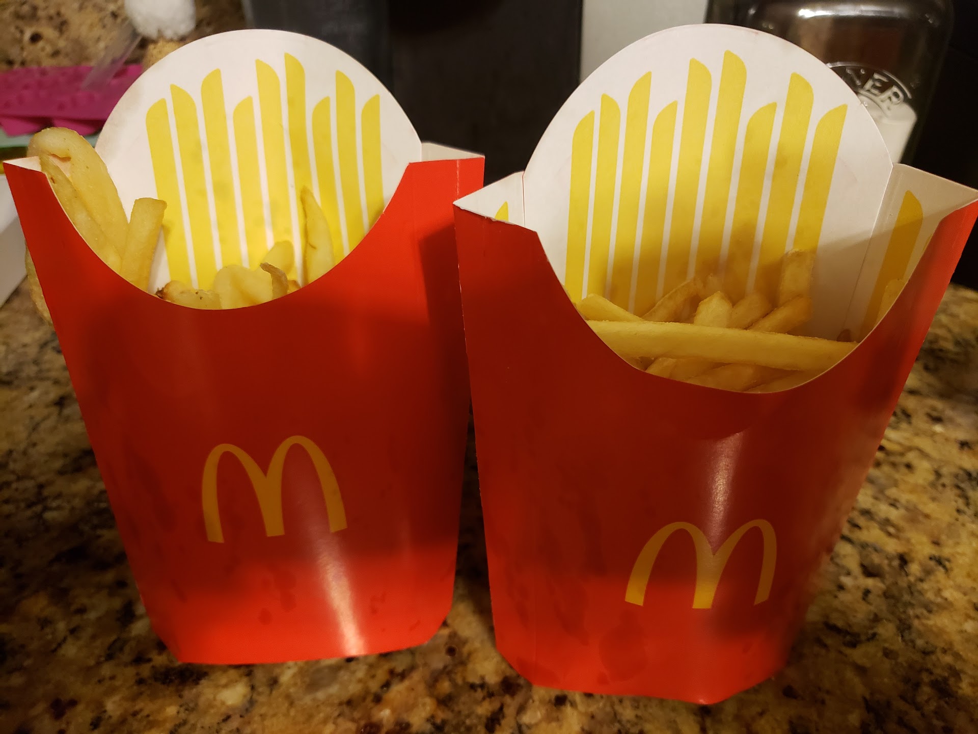 Every visit has different staff. I had not visited in 3-4 years because I disagree with the type of staff and neglect of the Business by the Staff. First I always disagree with cash register staff then go into food service and cook fries and drinks. Need to sweep or mop or wipe off tables/chairs. Last visit in 2023 I requested no salt on fries. The fries was cooked, dumped into pan. The pan already have some residual salt. The male staff allowed some fries to stay in the fryer so not to touch the residual salt but then put down in the fryer stove for additional cooking and said "these can be cooked longer for burning" he turned to a staff talking smiling. The staff walked away. I questioned the male staff if those fries cooking is mine. He said yes. I said I will take the fries in the residual salt not the ones your burning. He questioned that's salt you want. I said yes I heard what you said about burning the fries my fries. Burnt food in these Businesses is documented and posted on the wall that cancer can be caused even 7Eleven have one posted. He stopped the fries from cooking. I didn't get those. My order was bagged and the fries caused the bag to be fully stained. I believe McDonald's has different ingredients and using plant based or not America đşđ¸ beef. I confirmed with this meal I can't eat at them. This is the 3rd location. Plant Based foods has a fumigating scent from my neck into my nose after eating with keeping my mouth closed that is nauseating for days. The fumigating is like smelling plants and the stems in a flower shop . They cant deny. My remedy is to stop eating for 2 days. My sister introduced me to store/market foods of plant based and I recognized the same effect. I stop eating while at her house until I excreted that out which happened in 2 days. I like veggie burgers but in California they are not the same anymore. Before made with all herbs: pepper, tyme aregano garlic and other flavoring/seasoning with bread crumbs and moistened with water into a hamburger shape. Now plant based and not the same ingredients. The soda fountain need sanitizing I don't believe the components are disassembled and washed, the fountain area drains and counter looks the same wet and sticky with flies swarming around that I call cemetery flies because the area smell of cremation. Again be aware that Individuals use chemicals and other substances then think that food will make them feel better. Good they serviced the ventilation that caused the dinning area to be dusty dirty but then was so cold the food got cold, the Staff would not increase the temperature when my sister asked, we got our food and sat down then stuffed our mouth but asked for hot fries, no customers ate inside and we got hot chocolate from extramile while our food...