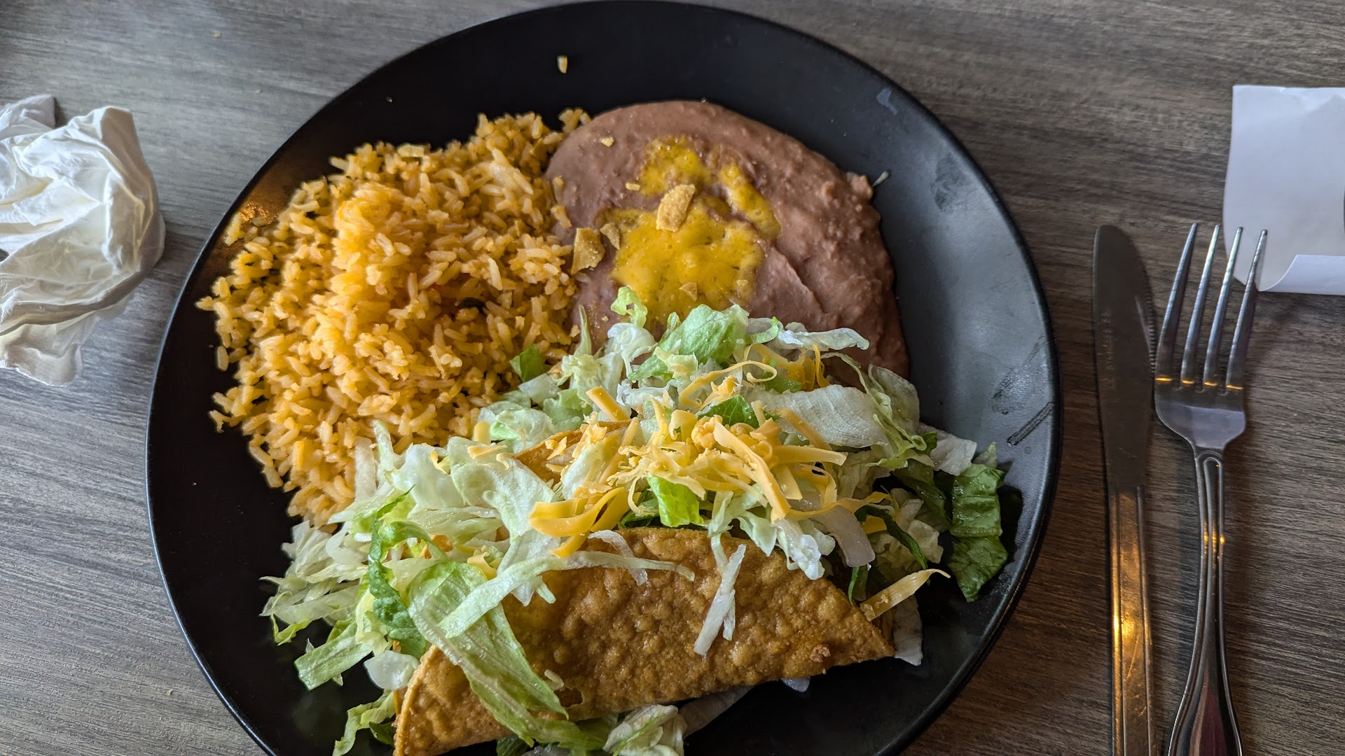 Read moreFood was lacking in flavor and that’s what you usually seek Mexican food for. On top of that there’s nothing Mexican about the atmosphere, all dark decore, no authentic or original culture to this place, actually I think they only had one photo up on a wall. Bathroom sinks have faucets that have a printed sign that says swipe on swipe off…well my partner and I both swiped many times and took an additional 5 mins just to get it to turn off. Worst part of the experience is the older waitress that served us, she was extremely unwelcoming or friendly…it was middle of the week and literally only 2 other tables in the restaurant. She checked on us maybe once, but never offered more chips and salsa or refills of drinks. She offered no suggestion on options when I asked her about getting 2 street tacos, seems odd that she told me only option for tacos was 4 or 6 to the point that I had to pick a different item and she still got that order incorrect. She hovered awkwardly during the payment process not sure if trying to ensure a proper tip was given but she spent more time at our table during that process than any other time. I’ve also never had a waitress point their finger to an item on the table and gesture for me to give it to them? One younger woman at the bar was friendly, I appreciated that, and I’ll give one star for how clean the place is - otherwise we...