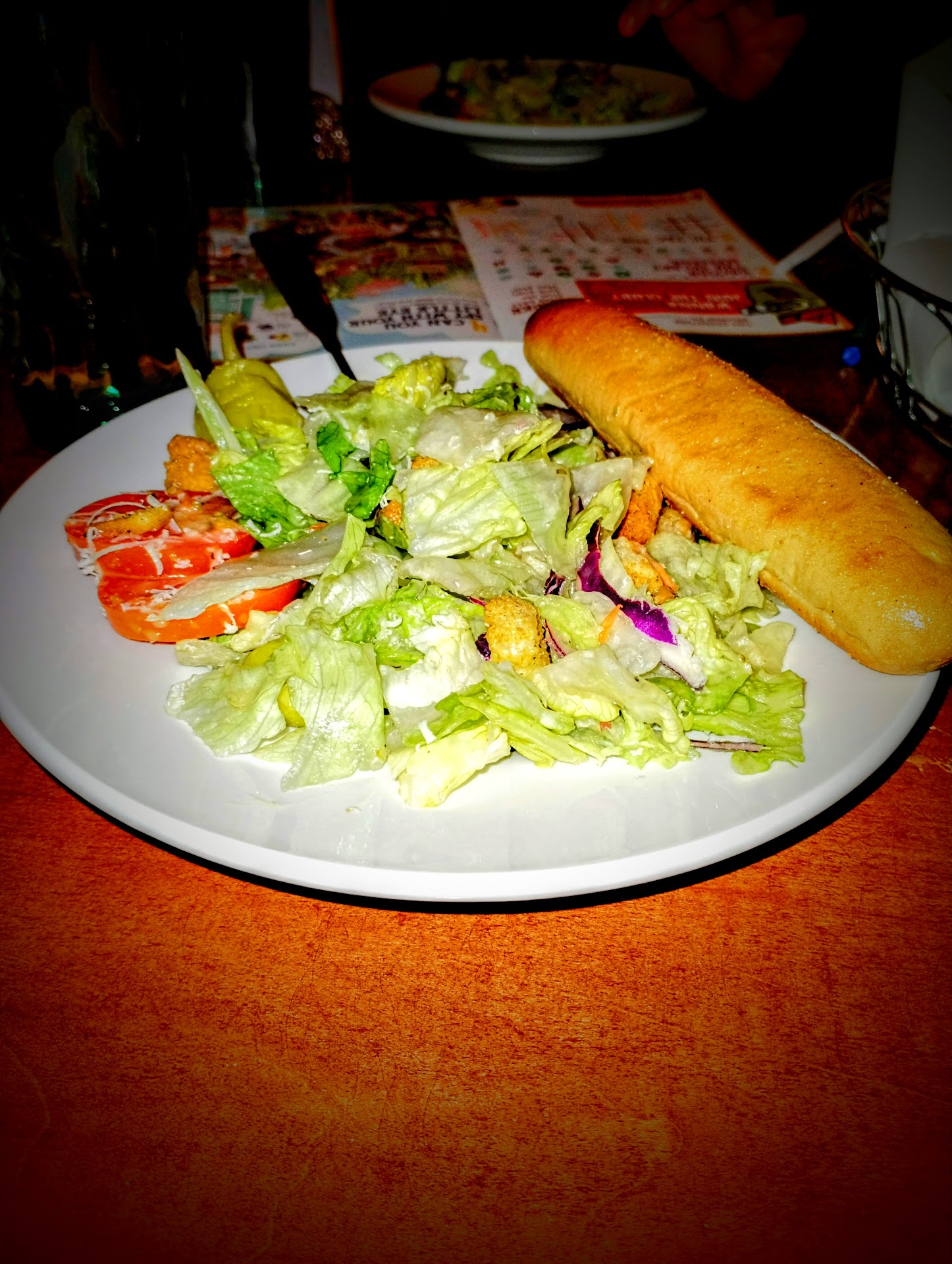 We were taken care of quite well with Nadia! She matched our jovialness with her clever humor and nearly seamless service. She gave us everything as we asked (and sometimes before we even asked!) except on the never ending pasta/soup (see below). Nadia made our visit so much better than we had originally expected. It's always nice to have people who enjoy their job. Thanks Nadia!