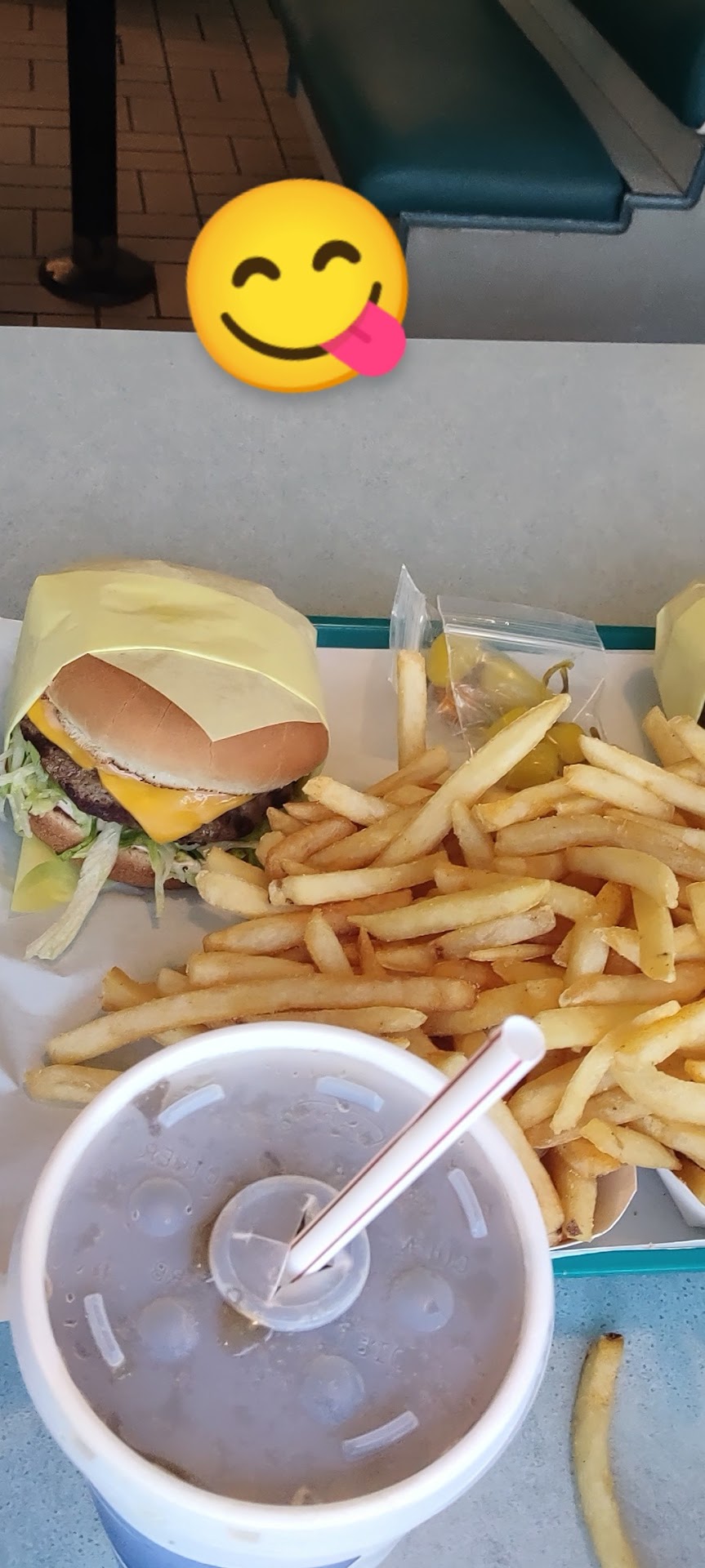 Ordering was a breeze in the front. After perusing the menu, I went with Omega Burgers facsimile of a double double, a lettuce-wrapped double burger w/ everything & pickles for $4.29 (cheese extra). Not having to wait too long before my order was ready, my double burger was a good size & had some heft to it. Thick slices of tomato, crunchy raw onion, the brightness of dill pickles, sauce & 2 patties enveloped by lettuce leaves. The patties were a teeny overcooked to my liking, but not a dealbreaker. I chowed down on that bad boy like a doughnut. Hit the spot? Yes, ma'am!