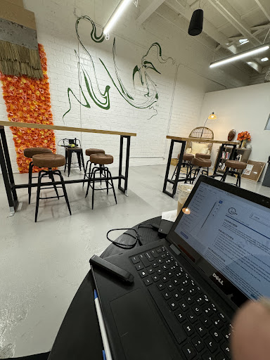 The place itself was clean with pretty art on the walls. It had a modern chic vibe to it with plenty of space by the big front windows, but what was really impressive was the overflow room in the back. It had a mini stage, tables and chairs for patrons, a media system in place, books and games for people to use, even blank canvases for painting; though I donât know if they plan on hosting art classes or just wanted to stage a look. The owner told me this coffee shop was curated for people who want a place to work, study, or just hang out and enjoy the moment.