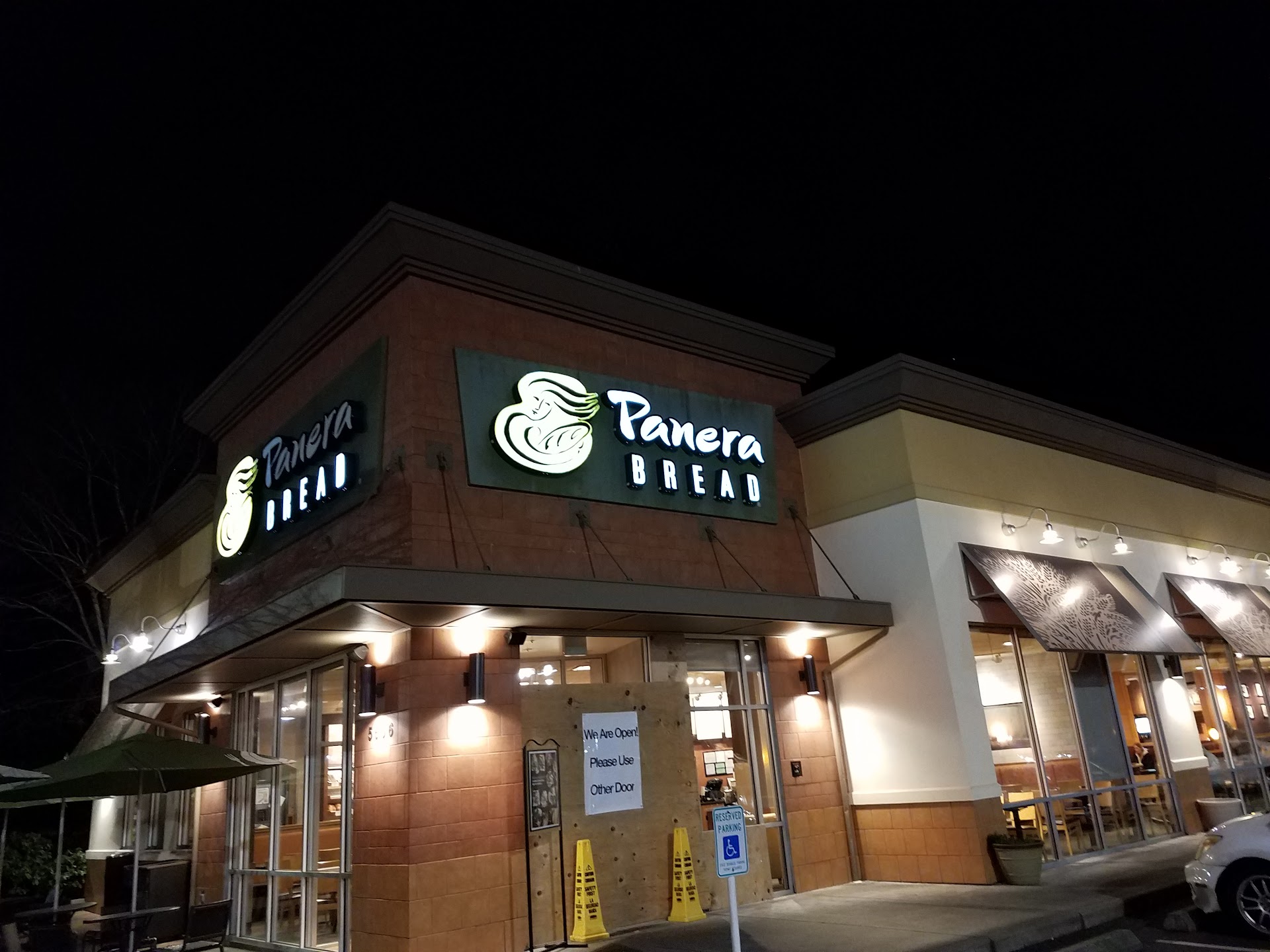 The universe strikes again, their non- handicap delivery tech for inventory orders pulls forward and parks in a handicap spot and started unloading Panera’s inventory order. He then started wheeling it around and going in between his large van and an authorized handicap vehicle, scratching it!!! He ended up going back around going around the opposite direction and was able to get around to the entrance, then he almost completely tips everything over on the dolly. He caught it in time though.