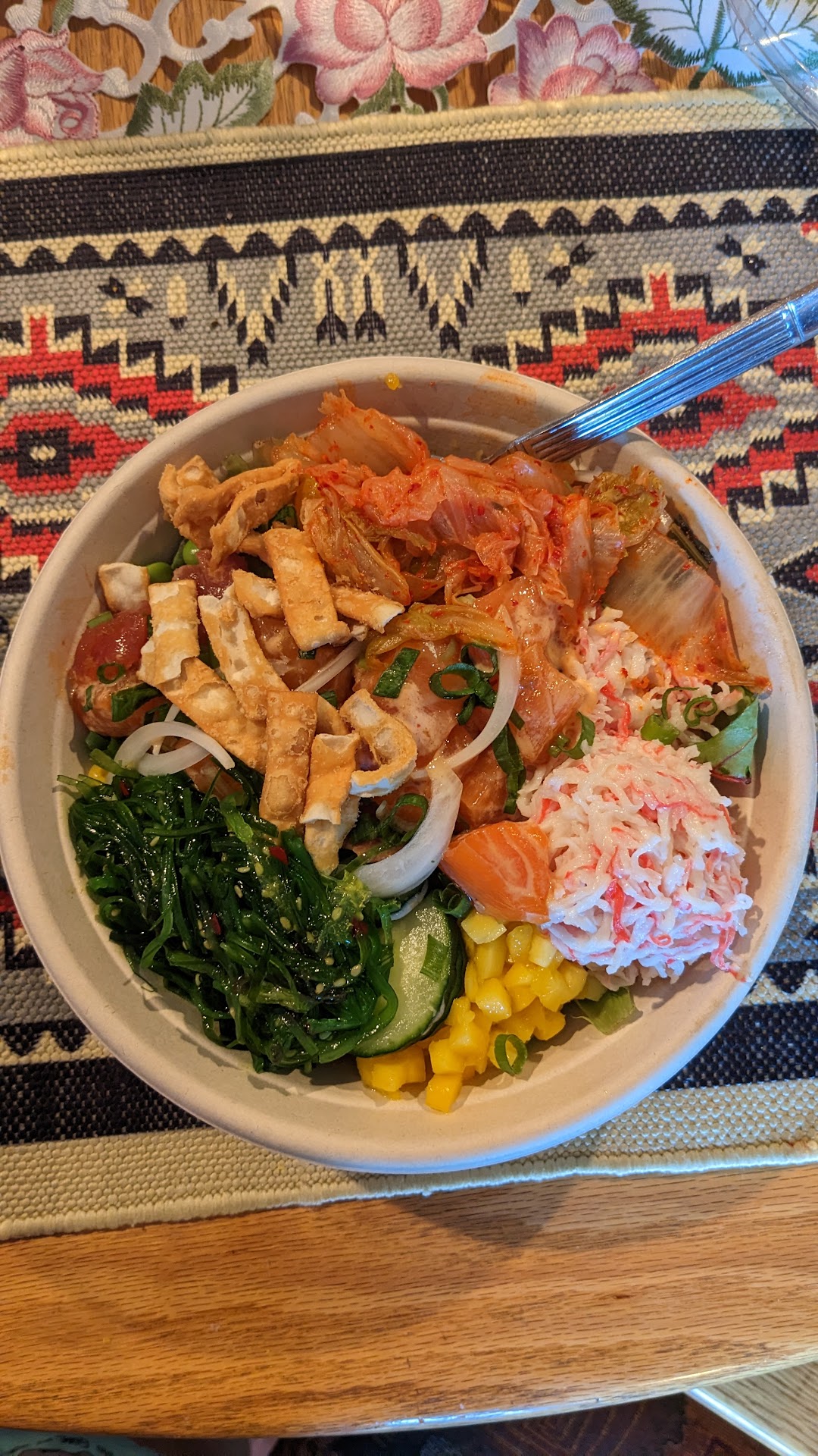 Serving portions were good and taste was alright but don’t get the seaweed if you don’t like the overwhelming taste in most of your bites. The fish seemed decently fresh. I got brown rice, and I don’t think I’m a big fan of mixing hot rice with cold ingredients. Set me back 21 bucks for an average poke bowl.