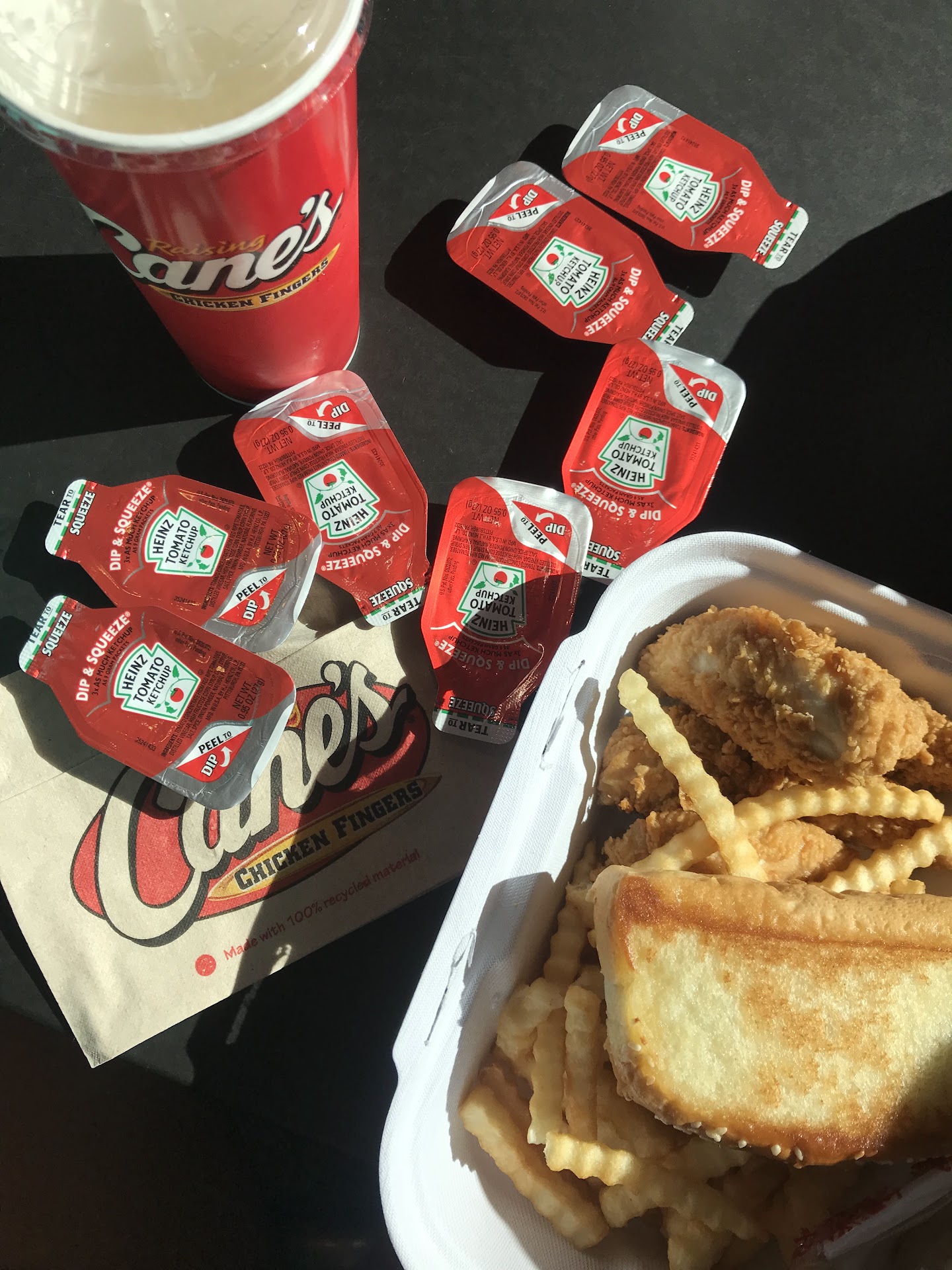 Read moreThey are a bit expensive but I would go back. Not anytime soon though. This is my subjective opinion on Cane's. Cane's chicken tenders, to me, are similar to Carl's Jr's tenders. Cane's breading in the tenders are better though. It reminds me of Jolly Bee's chicken and to me, that's the best fried chicken. It tastes homemade. It also reminds me of a tempura batter. Their Cane's sauce is good but it is similar to McDonald's Signature sauce (yes they taste different, but that was the first thing that came to mind), their fries were good to me and it was an extra brownie point that their fries didn't have a lot of salt on them and that's without me having to ask for light salt, but they are similar to DelTaco's fries but thinner. Their Cole slaw was edible but it seem like it was missing something but I just don't know what. And last but not least, the bread that they served with it was perfect to me. Overall, they are good and I would go back, but not anytime soon. This was my first time eating here after hearing all of the rave about Cane's and I'm not disappointed but...