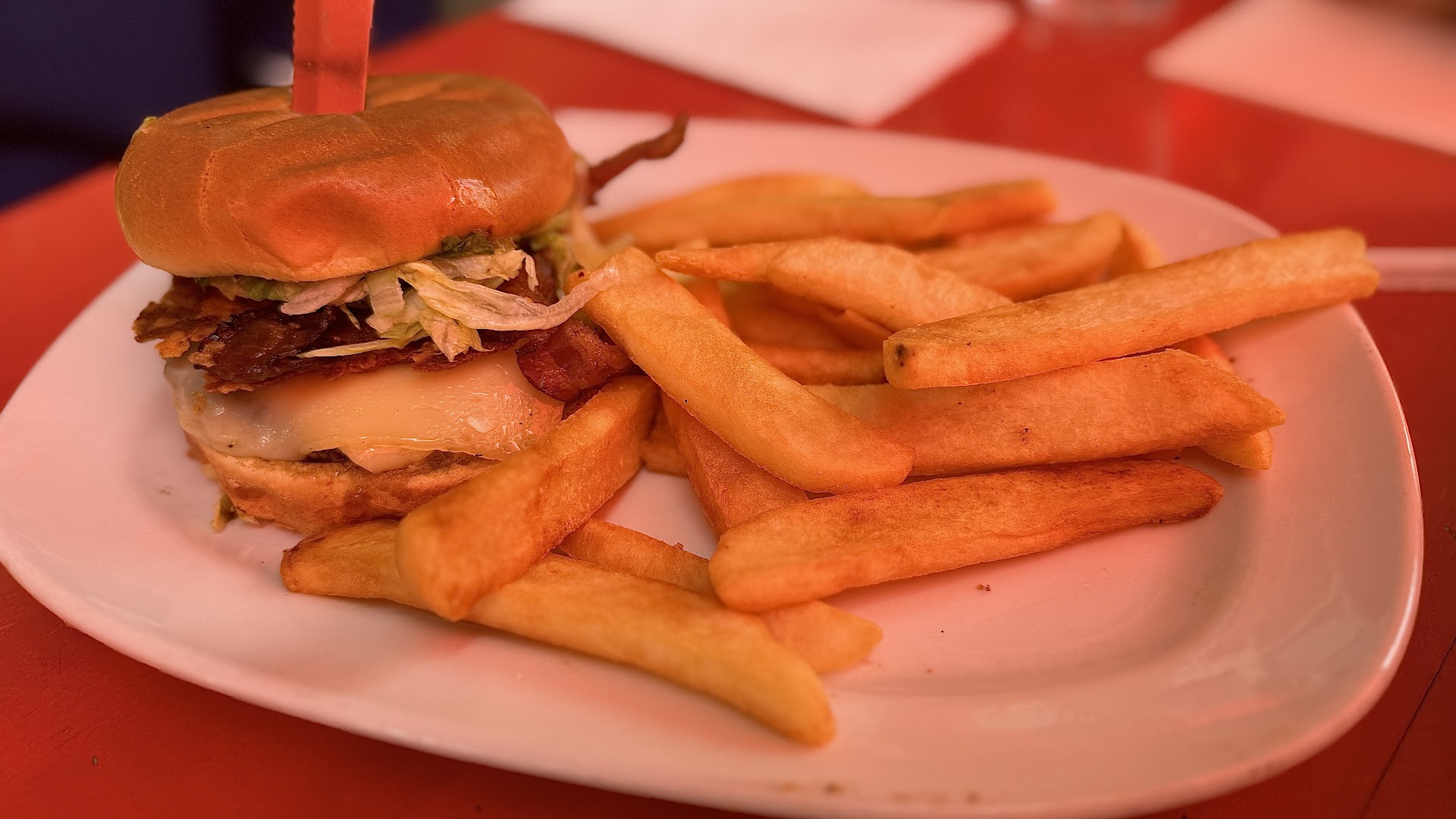 Food/drinks: Our burgers were great as always, our drinks were delicious, and my extra crispy garlic fries were fantastic. However, my sister's Yukon chips weren't good; they were not crispy or crunchy, more like that stale kind of soggy crisp, if you know what I mean. We were very disappointed with those, especially since it was our first time trying it.