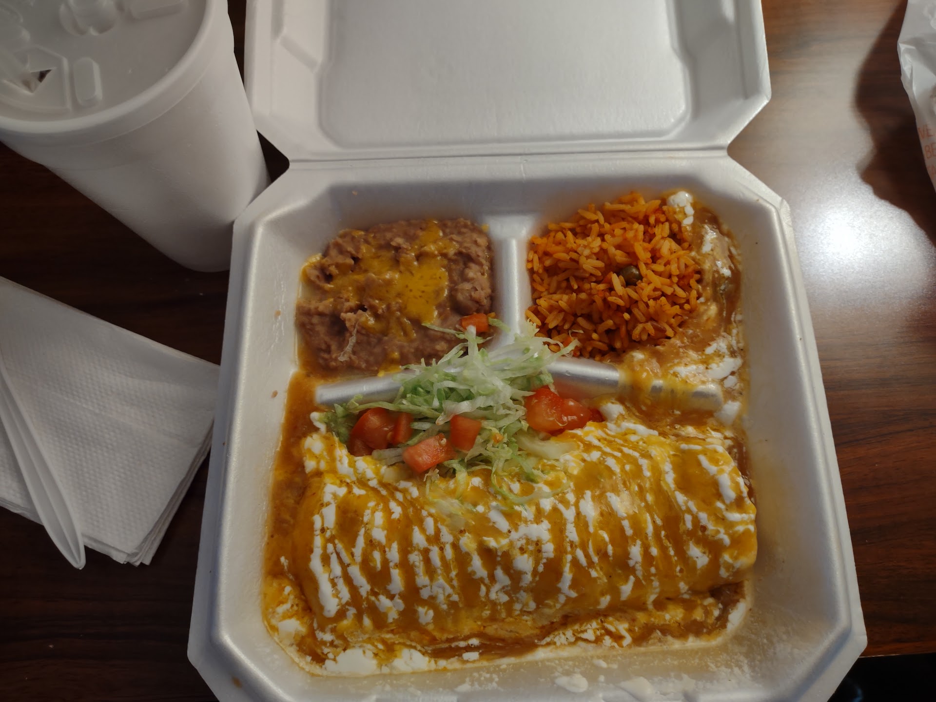 Read moreService sucked!! A new staff member messed up and acedently let me get hochata with my kids menu order (I asked if i could get hochata at the same price she said yes.). Well turns out she was wrong and Instead of letting me KNOW OF THE MISTEAK. Or eatting the little extra cost of price difference on there end since its ALOT CHEAPER, she decides to give me 1/4 hochata. And 3/4 ICE... for my kid. Wow I JUST WOULD RATHER YOU LET ME KNOW AND SWITCH DRINKS. GETTING MY MONEYS WORTH THEN THAT!! Then when I let the lady Know (Mexican girl with a nose ring in the middle of her nose like a bull) she said" SHE HAD TO PUT THAT MUCH ICE BECAUSE I SHOULD HAVE NOT GOT HOCHATA INSTEAD A SODA.", I said so if YOUR EMPLOYEE messes up then punish the costumer that's your view. She said yes. So when I asked to speak with the manager, he didn't seem to get why I was so bothered by what they did. I THINK THAT SOMEONE WOULD RATHER 100% of THE DRINK THEY PAID FOR! THEN A CUP OF ICE WITH A EASY DRINK! Manager didn't even fix anything...