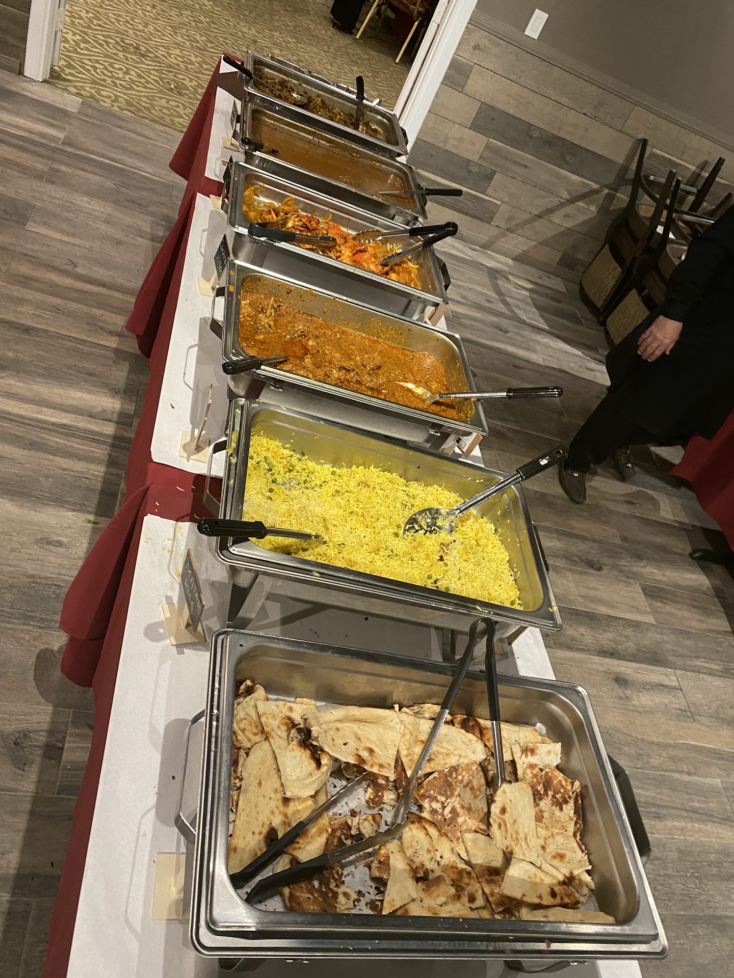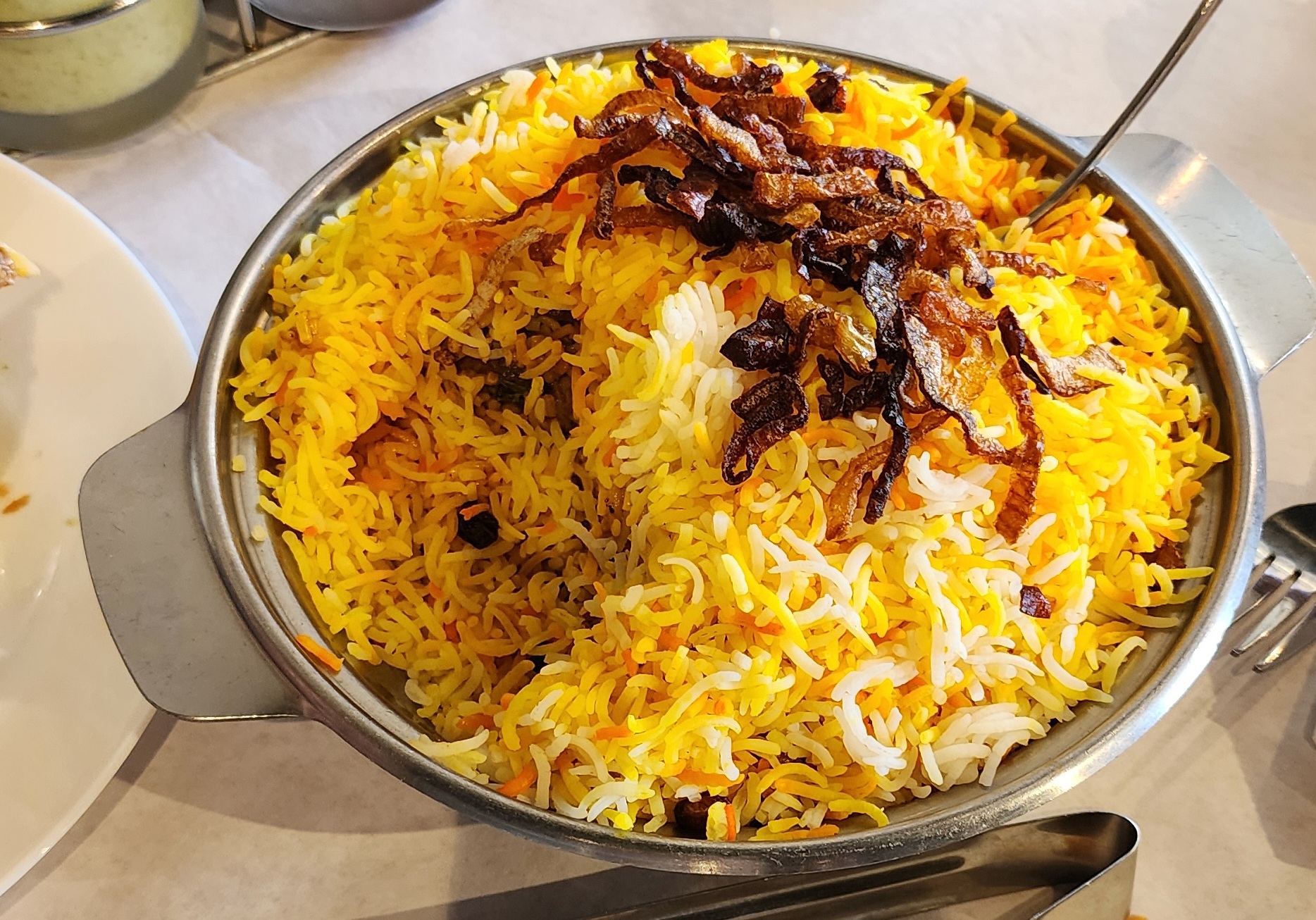 Service was okay. Being the sole customer dining in & one person picking up takeout, the Chicken Behari Lunch Special took a little longer than I believe it should have. Of course, once on the table, the food was satisfying. A good amount of seating inside the restaurant itself, the large banquet hall has a tremendous amount of space. Iftars during Ramadan are held in there, to break the fast of those that observe it. Parking is via a private lot.