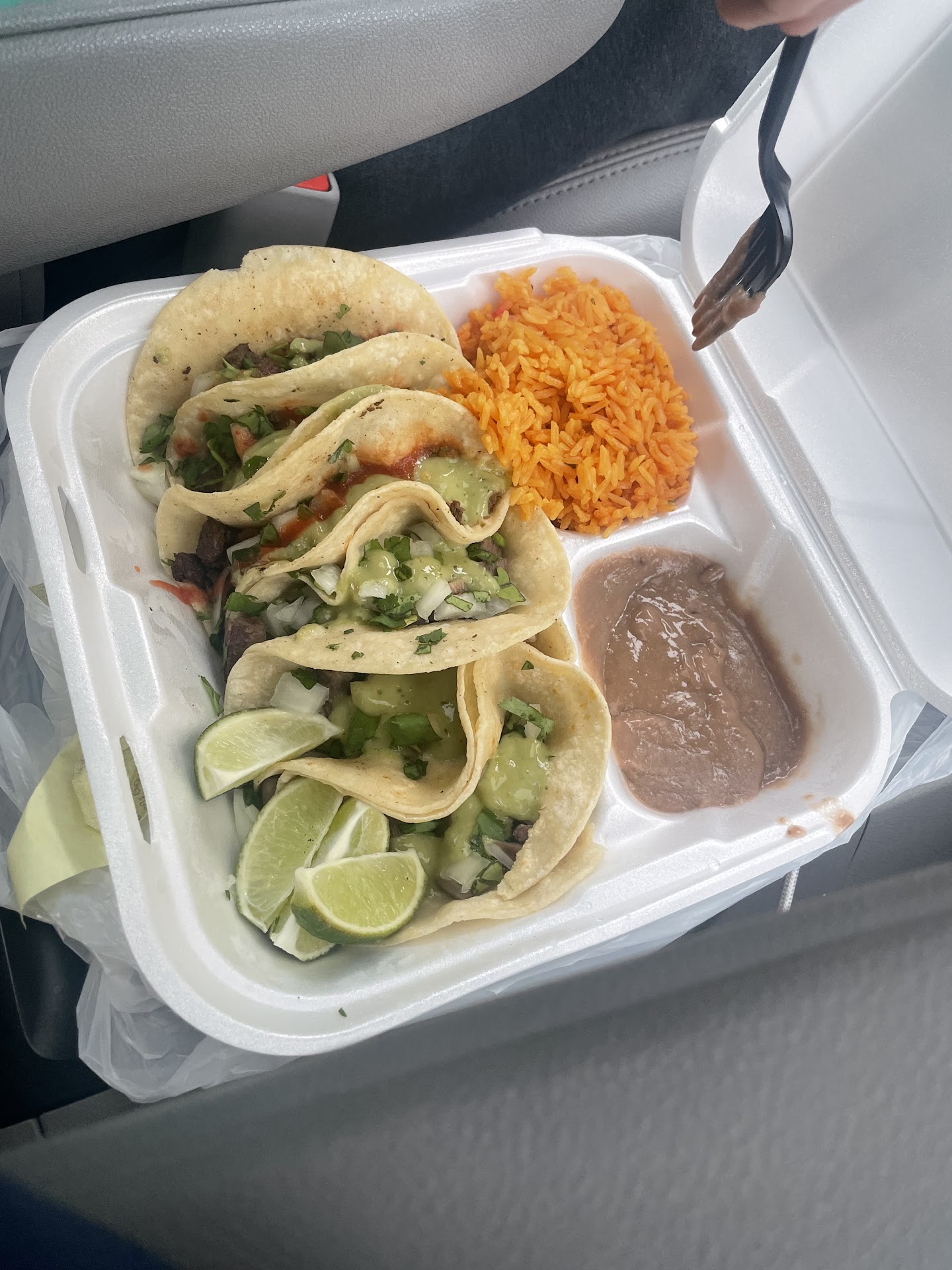 Absolutely lovely people with a great story and a nice vibe. The restaurant was small but cozy with only a few tables. We spoke to them a bit about how they got started and placed our orders. We both ordered a taco plate and their version of elote. We had a lovely conversation with them as we waited. Then our food arrived, corn first. Usually elote is a comfort food, and theirs was okay - nothing super fabulous. They replace the traditional tajin style seasoning for flaming hot Cheetos which is interesting, but it didn't taste as good. Our tacos arrived and they were good, but again, just average. Not anything better or worse than most of the other taco places around. They do make their own tortillas in house, so that's a major plus. They're asada was probably our favorite because of the house sauces they put on it, however the carnitas were super soggy and wet. They just dissolved the good tortillas. The adobo they use for their al pastor - which is my favorite - was just overloaded with salt. They weren't bad though. They were just average, so I can honestly say I'd get the asada tacos again were I in the area, but I wouldn't go out of the way to go back specifically for them. The rice and beans however were just bland and bad. Overall it's a very average taco place - though a bit expensive, with fantastic people. I would recommend going and meeting them, seeing the restaurant, and ordering a few...