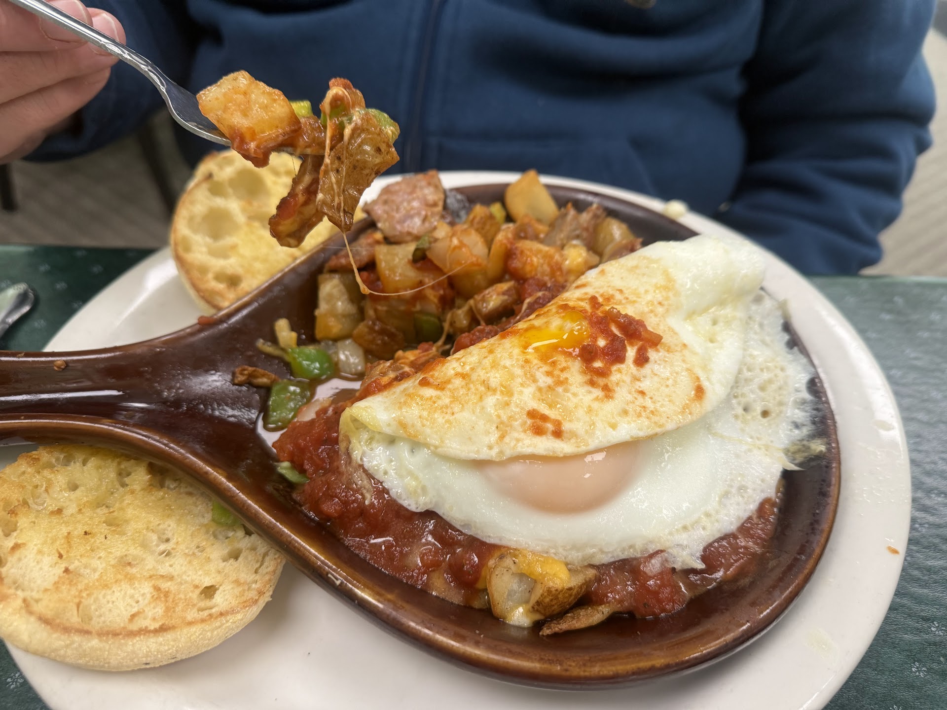 Read moreI've always been a fan of Sunrise Sunset but honestly I have one favorite and it's my go to meal everytime. I don't need to see the menu I always order the Bacon Benedict. Basted eggs on English muffins with onions, mushrooms, cheese, good thick-cut bacon and great hollandaise sauce; served with diced potatoes. The potatoes are frozen not fresh but they're not grated hash browns. They have great spicy dishes here from what my friends tell me but I can't attest to that myself. I was a little disappointed to learn on my last visit that they serve only one type of bread, a whole grain. I'm not a whole grain type of person and neither was my friend. Her only other option was an English muffin. I've always had good friendly service here but I will warn you, it gets busy sometimes really busy so be prepared to wait. Unfortunately we waited an hour to get our food on our last visit two weeks ago. I think the price is reasonable for the area, nothing is cheap anymore. Lastly I'm not a huge fan of their coffee, I'll only order it if I haven't already had any coffee that day but my friends do call me a coffee snob and I like it strong. I would definitely recommend it, especially the...