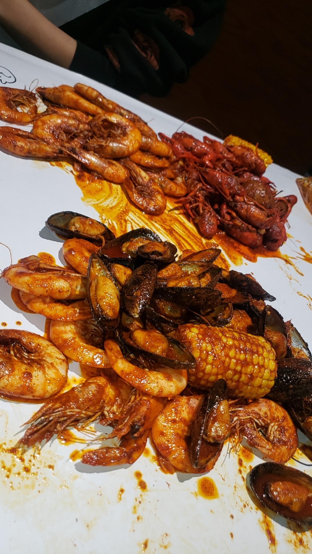 I finally decided to ask if they were still serving and exclaimed though I was waiting for other customers bit was promptly sat down at a table. I quickly ordered as even if I'm dining in last minute I'm fairly quick eater and if not I'll help myself out before closing time anyways. I paid about 5 minute prior. I ordered shrimp .medium spice with the Cajun seasoning. The spice was a bit more than medium I would say for most. I can eat spicy but glad didnt order hot "pro". It's not that it was super spicy but because it is powder shilli and some parts are still dry it will make you cough a little. Anyways the shrimp was cooked Perfect nice size shrimp and bieve the proper amount for 1 lb. I added potato $1, corn $1 , sausage $4.99 and side of rice $3.50 Totsl came up to $32-$33 w tax.