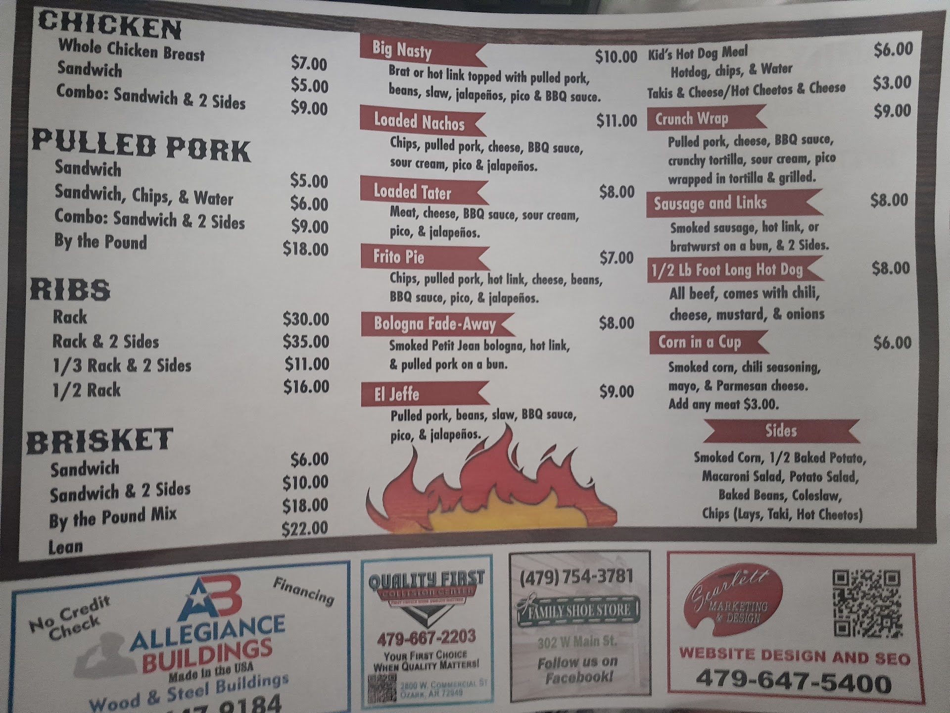Read moreI stopped here with my wife and youngest son for something different and was very satisfied!! I got the Big Nasty, my wife got the brisket sandwich with two sides, and my son got the loaded nachos which were all very good!! The big nasty was piled high with a yummy combination of pulled pork and slaw all covered with beans and BBQ sauce, two words... Freaking Awesome!!! The hot link was perfect and honestly wished I had a pile of just the hotlinks right now. I highly recommend stopping by and taste the greatness that is...