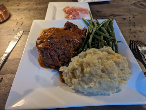 I went with the short ribs entrée, which was underwhelming. A big part of it for me was the texture - top-tier short ribs should be tender and flaky, but this just wasn't. It didn't fall apart easily and required a lot of extra work with my knife. It was also on the bland side, and I didn't finish it. The garlic mashed potatoes that accompanied it were probably the highlight for me, and I'd argue that if your side is overshadowing the main course on the plate, that's a problem.