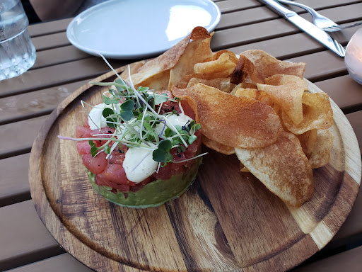 For drinks my friend got the smoky old fashioned and I got the perfect pear. Both drinks were fantastic, refreshing, and boozy. For apps we wanted to share the tuna tartare. The place wasn't super busy for a Tuesday but it did take 20mins for us to get our app. The tuna was mixed in with chopped tomatoes. I noticed there was a lot more tomatoes than there were tuna which was disheartening especially considering the price. The chips on the side were crispy and seasoned well.