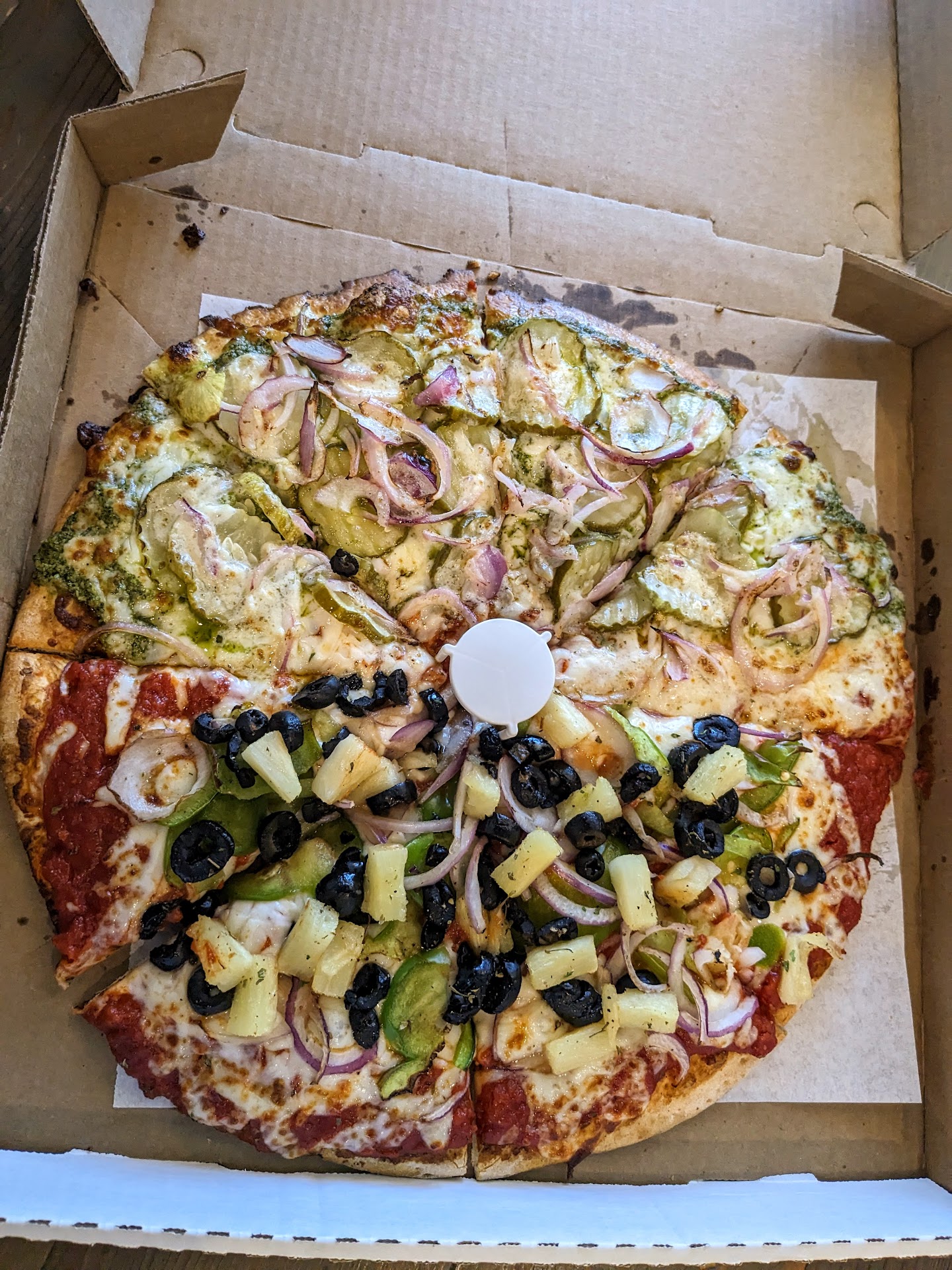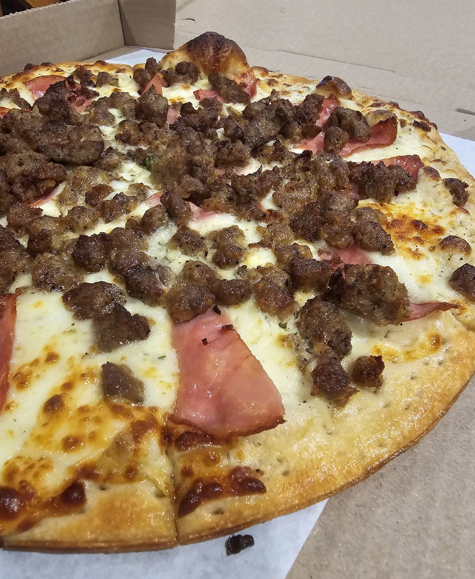 Read moreBig Belly has changed...the pizza doesn't have the tasty crust and generous toppings anymore. I ordered sausage, Canadian bacon, and meatball toppings with a garlic sauce. They have a thin overcooked crust (like a saltine cracker) coated heavily with grease or oil; the sausage looks like dog kibble; the meatball slices look like crumbs. And if you want Canadian bacon...there was only about one piece on each slice. Sorry, but this is the second time this has happened, so you have lost my trust and my Google Stars. It isn't the same food at your shop which is a shame. The crust is so chewy and rubbery even though it is thin... It used to be the best! I'll be getting my quality pizza from the "Home of the Brave" from now on. So...