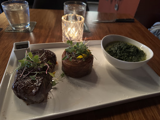Read moreThe server was very friendly and kind, providing a warm and welcoming atmosphere. Although she did check-in with us regarding our appetizer, she was too preoccupied to check-in regarding our entree, due to her being the only staff in the dining area catering to 4 different tables; understandable but didn't leave us the opportunity to address our issues with the entree (which will be highlighted below) until we paid for our bill and came across someone else by happenstance. The aesthetics were elegant and on the dimmer side, especially if you're seating at the corner tables away from the light, we recommend sitting closer to the light or by the entrance if there's still light out. We really loved the crab croquettes appetizer, which had a perfectly crispy exterior that complimented perfectly with the moist interior mixture of potato and crab that paired very well with the aioli. The crispy potato that accompanied the NY strip was perfectly balanced as well, with the crispiest exterior that I ever had with a potato dish!