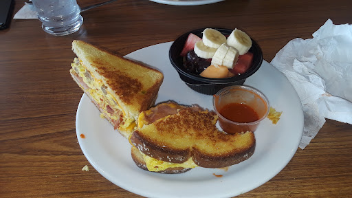 Read moreWe went late at night after watch John Wick 4. Friday night around 11pm.. oh man.. should have just went somewhere else like my husband wanted... First, the server was nice. Got our drinks quickly and was polite and got our orders. From there it went down like a hot air balloon on fire! Husband asked for a plain bacon double cheeseburger with lettuce. They brought him out a single patty cheese burger with all the sauces on it. My moon over hammy omelet came out cold, like seriously had sliced cheese in it that wasn't melted, and the cook was making my hollandaise sauce and "should be out with the remade sandwich".. the sandwich came out and still no hollandaise. While I waited I thought I'd eat my GF English Muffin and it was OVER TOASTED AND COLD! I haven't touched my main food since it's already cold, thinking warm hollandaise may warm it up, well he finally brings it out 10 mins PAST the remade hamburger AND ITS COLD! Then I start to eat it and it's HORRIBLE! I hadn't eaten all day and was shaking otherwise I would have made the guy remake ALL OF IT! As I'm eating it tastes as he added vinegar to the hollandaise (there isn't any in the recipe if made by hand) SUPER peppery, and I literally had to ask the waiter to throw my food in the microwave because it was ALL cold! This place has good reviews, but as for the night cook, RUN! Stay to the day shift for good food. I tipped the server because he tried but the food was HORRIBLE for me. The burger was good for my husband but the chicken tenders were over...