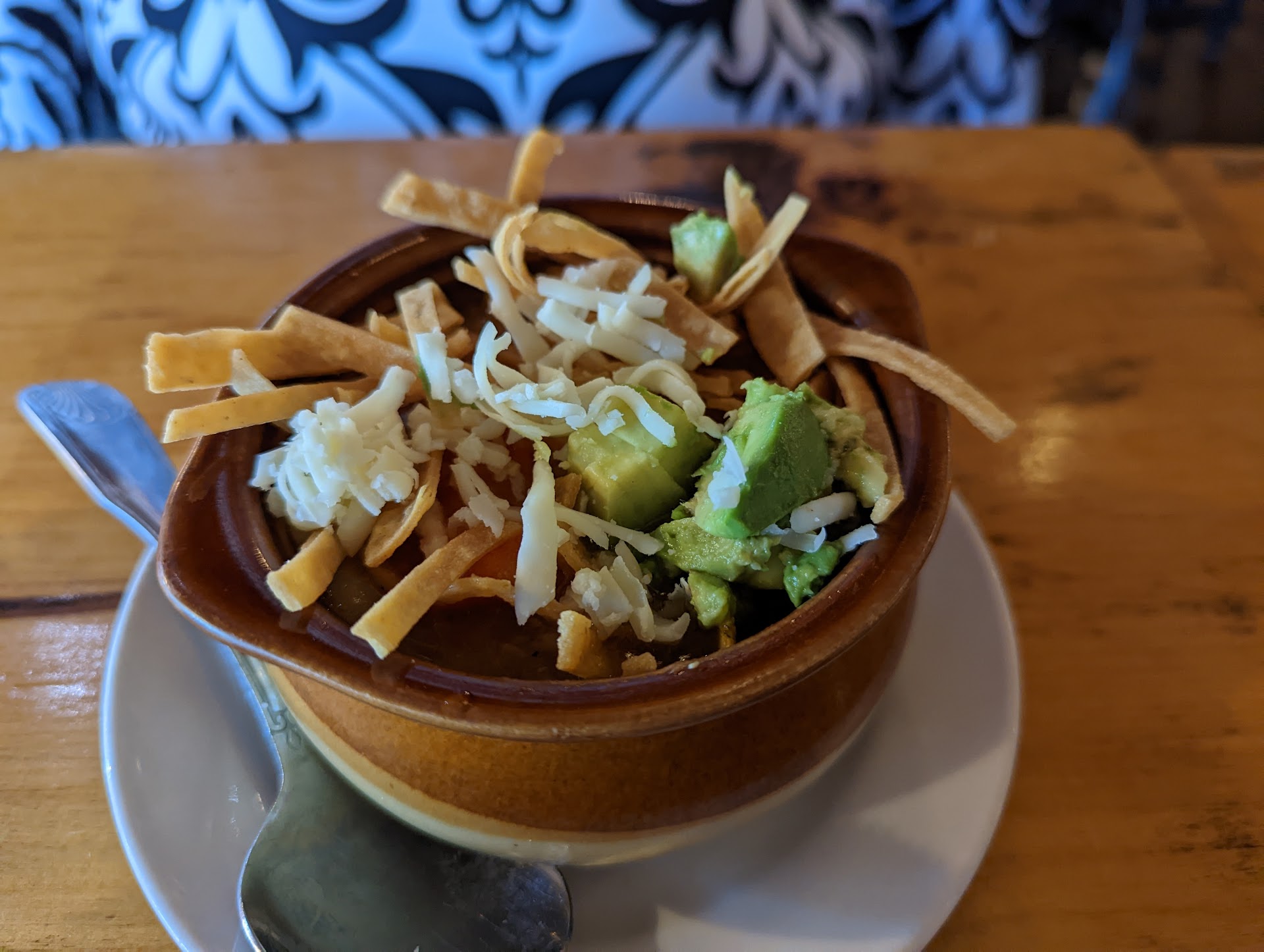 Our food server came to our table within a couple minutes to take our order. As we placed our orders, he carefully explained the basic ingredients of the dish and accommodated any requests to omit certain ingredients from the entree. (My wife is notorious for always asking that her food not include tomatoes, onions, or sour cream.)