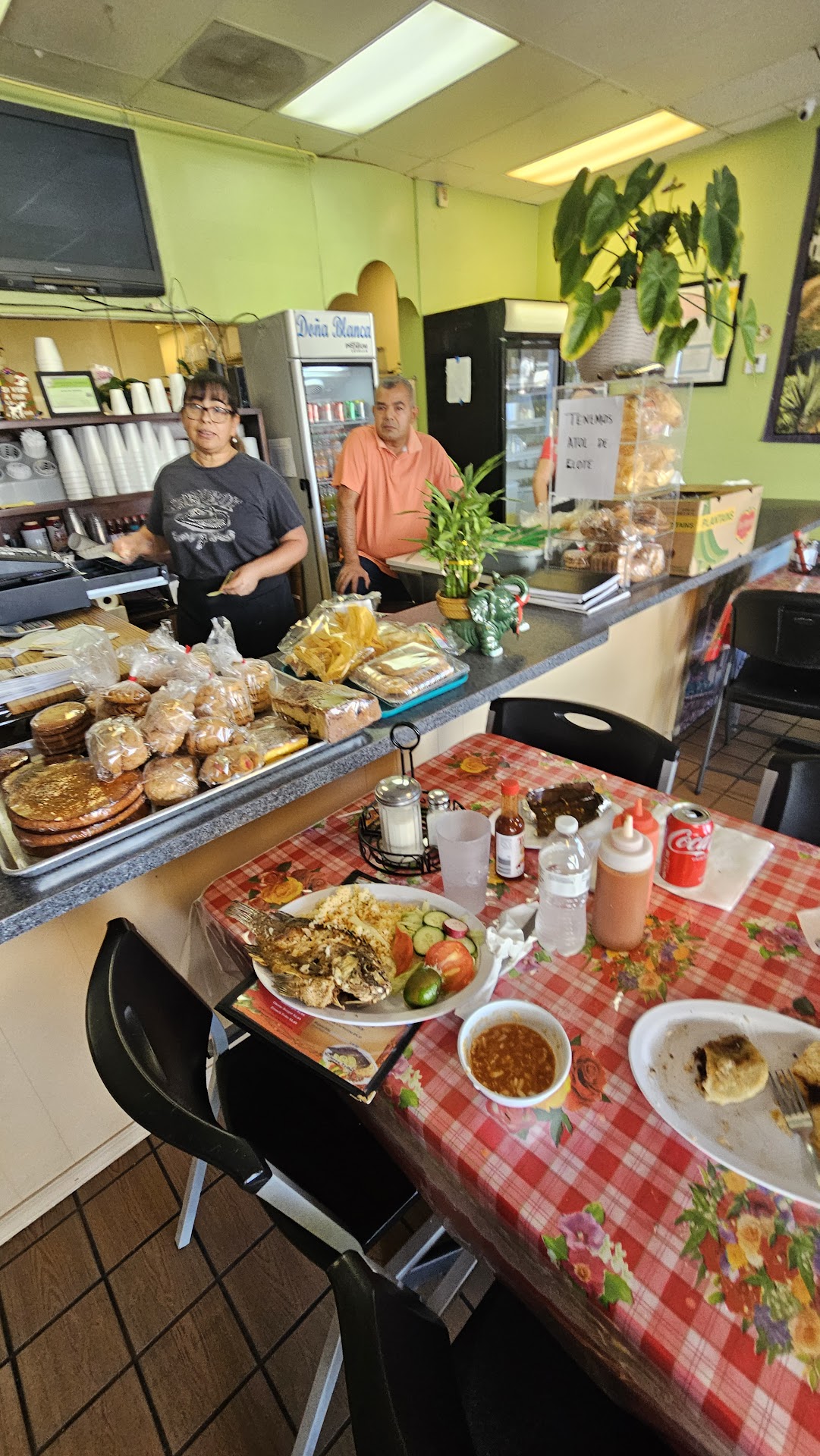 Man I sure wished I had read these reviews before even setting foot in this place! But since we were in the area and my kids and I were hungry for some Pupusas and other antojós.. Well when we parked I noticed about 5 people going in- so in my mind I’m think ok then must be good or this is the only place local to go.. upon entering I see people waiting at their tables.. no food or drinks.. just watching TV and their cell.. so I was like okayyy mmm maybe they just ordered or what... then since no one greeted me to ask if I was to eat in or out I stood in line.. while in line inspecting the whiteboard menu.. reading that on Tuesday and Thursday they have pupusas special $1.25 or $1.50 minimum order 5- I though ok that’s reasonable.. but wait! Then you go on reading if you take to go!!! If you eat there then it’s $2 each!! What in the world?! That doesn’t make sense.... so I’m like whatever, we’re here we are hungry let’s order.. then on the cash register it has a note in Spanish that if you pay with Credit card the fee you are charged depends on how much you buy!! 😮 what?! That I had to ask about and I did to the lady light skin/hair at the register what does that mean.. she says the machine is programmed how it calculates what the fee is to use your card.. I said I never heard that the most is $1.00 charge and aware since they have that machine they as restaurant owners are charged to use it.. but heck not have your customers pay all the bill!! Anyway I let it pass.. So we Sat down to order and mind you those people waiting still didn’t get their food... That should have been my red flag to get out.. but Im like I’ll give the benefit of the doubt.. so finally we ordered.. pupusas and carne guisado cause there was no pollo guisado...oh I asked for water and she said we only have bottle water which is $2 so I said naw... it was a looooong while until we got our food... I was about to get up to leave but said no, let’s just wait... all the while I see finally people Getting their food- upset so long and took off... food was ok.. disappointed it did not come with frijoles!!! Rice could improve and vegetables in the guisado más jugoso por favor!! The agua de ensalada could be improved!! Better taste... Nope we will definitely Not come Here again... oh and i did order some pupusas to go- sooo greasy... not enough fillings... Dona Blanca- mejora su staff, su servicios, su menú- no es bueno genre esperar 35-40 minutos para comida... Donde yo vengo hay un restaurante llamada La Compalapa... y solo iba una cocinera! Y ese lugar es rápido y servicios excellent! Comida también... y dan frijoles con sus guisado más arroz y ensalada por casi mismo precio que ustedes cobran.... No BIG...