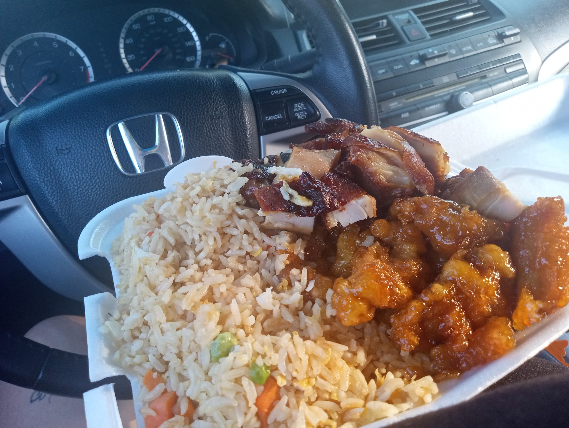 The rice is actually fresh white rice, the orange chicken is high quality chicken, the chow mein is like actual chinese noodles. And there's so much of...