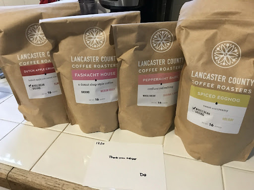 Read moreFantastic coffee! I ordered the egg nog, peppermint, dutch apple crumb cake and the donut shop. Dutch apple crumb is AMAZING! Well flavored and very fun. The egg nog though is the standout flavor. When I was grinding it I was a little concerned because it had a very strong scent that was kind of heavy on the rum flavoring, but when brewed it the flavor was incredible. It has a nice nutmeg flavor with a little citrus finish that is divine. The peppermint was also great but you should really like peppermint. It actually gives a little cooling feel in the mouth when you drink it, which I assume is because they are using very high quality flavorings that are derived from the source rather than fabricated with chemicals. I will definitely order from them again. The hand written thank you note was also a nice touch. Shipping was quick and it was nice to have a taste of Lancaster...