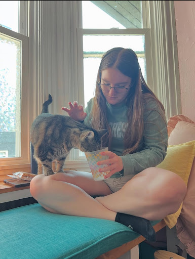 Read moreRead moreSo I drove with my girlfriend over an hour to come see this place. And let me tell you it was AWESOME! We really needed an activity to lighten our moods, and heal ourselves a little bit and this was great for that. To start off when we arrived the staff was amazing kind and immediately helped us check in with our reservation. (We made this btw less than a day in advance and we were mostly by ourselves during the visit and it was a 2-3PM slot ☺️) They also have so many cute local artists pieces for sale: stickers, prints, soothing beans, etc! I will say, with cat cafes you get one of two things: More cafe over cat or More cat over cafe And here it is cat cafe. Which is fine because we paid to see the cats. Most of the drinks were hot coffee based which isn’t my taste, but they had free water w/ reusable cups (we love a sustainable place) I did buy the monster cookies but didn’t want to tempt the cats, but eating them a day later after baking in the car I can confirm they were still delicious 😭 The overall atmosphere is cutesy and safe- if I lived closer I could so see myself studying here in the cafe and watching the cats through the windows! They had so many kitties and were very upfront about the new arrivals and how they’re still adjusting etc. There was also a little boy (5-6) who asked what was behind the door with the cat door, and she had shown us that this is where the kitties come when they need a potty break or people break! I love how all of their staff truly care about the wellbeing of their animals. No shoes to prevent fleas/disease, washing hands before entering, monitoring while visitors are present etc! And now to the cats, they were all so sweet- even Franz with the “DO NOT TEMPT IMMEDIATELY” sign (it was a fake sign he was a purring love bug the whole time 😭) Anika melted my heart- Shay sipped my water despite having fountains, and Mello was such a cute void. I would highly recommend this place for all ages really, kids, LGBTQ+ and straight people (ones with a sense of humor of...