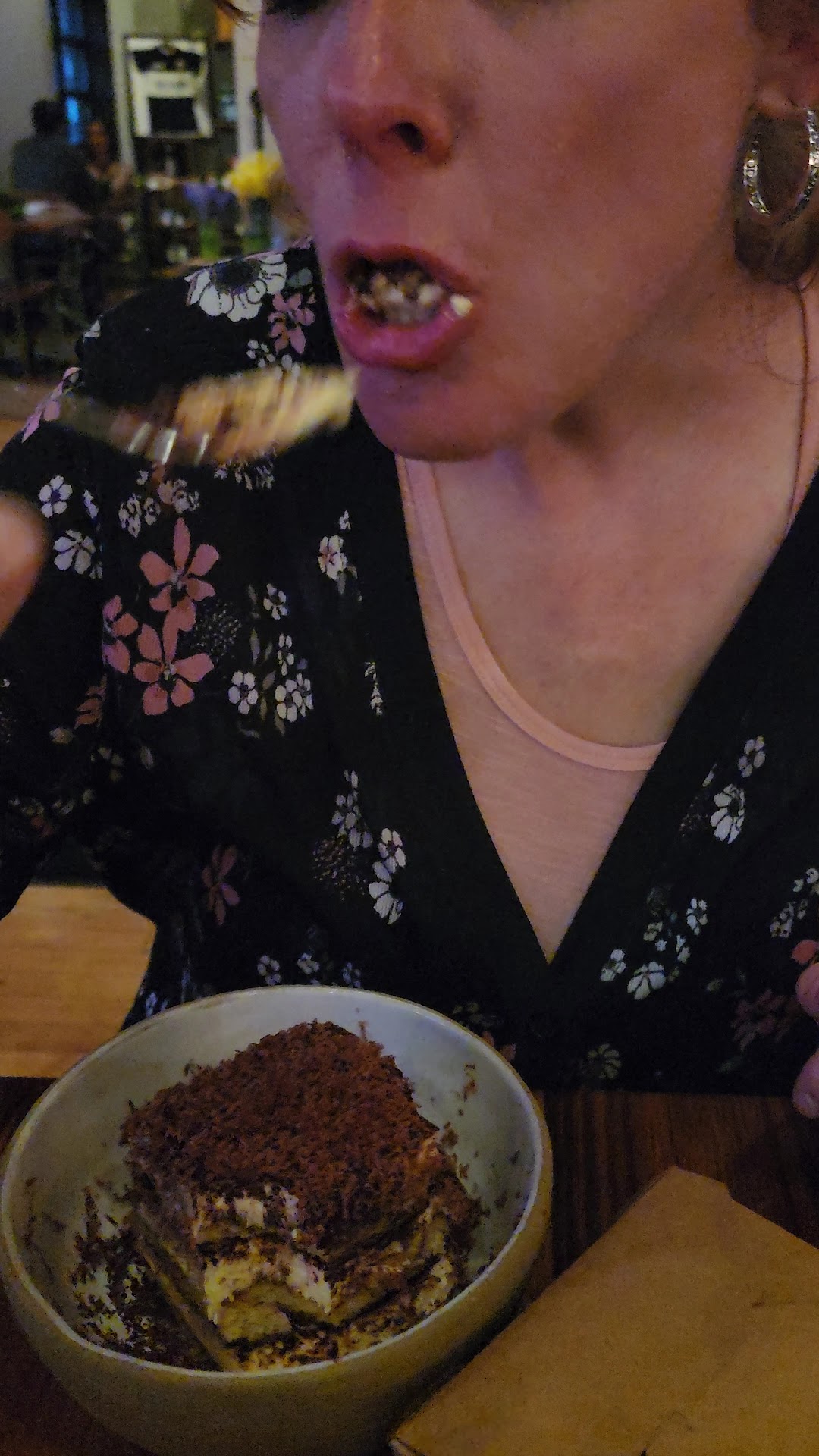 My dessert was the salted butterscotch budino which was a thick custard type pudding with marscapone and caramel on top. This is delicious and you should share or try it. My lovely lady had Tiramisu. The texture, fluffy of layers, and cream were delicious. However the cocoa or chocolate was a little bitter. It wasn't overly sweet which I appreciate but may have paired better with a drink that goes with it. I thought it was good enough but my girlfriend believes she has had better. I'm not a coffee person and I appreciated it not being sweet, so I am not sure my opinion was valid.