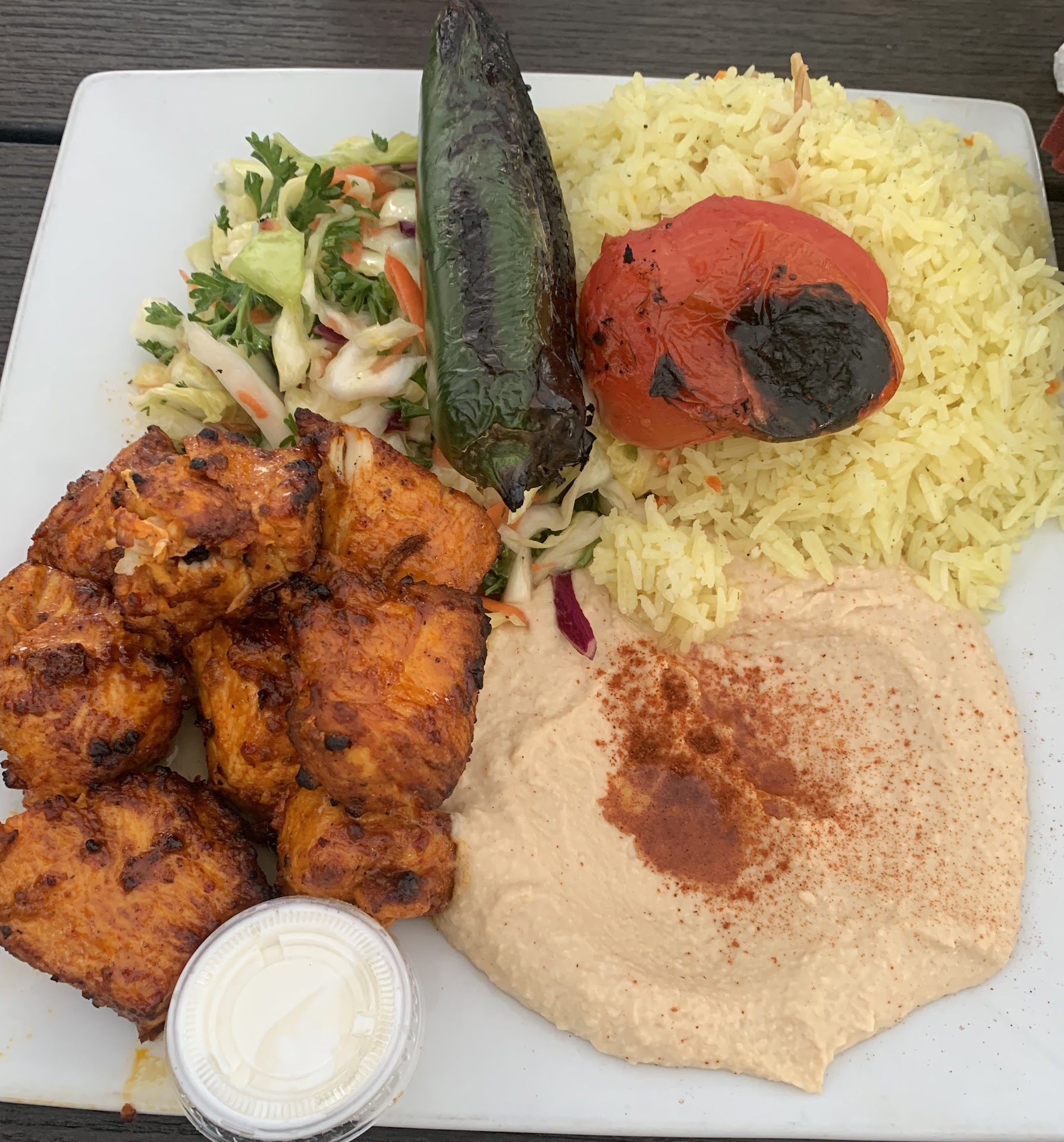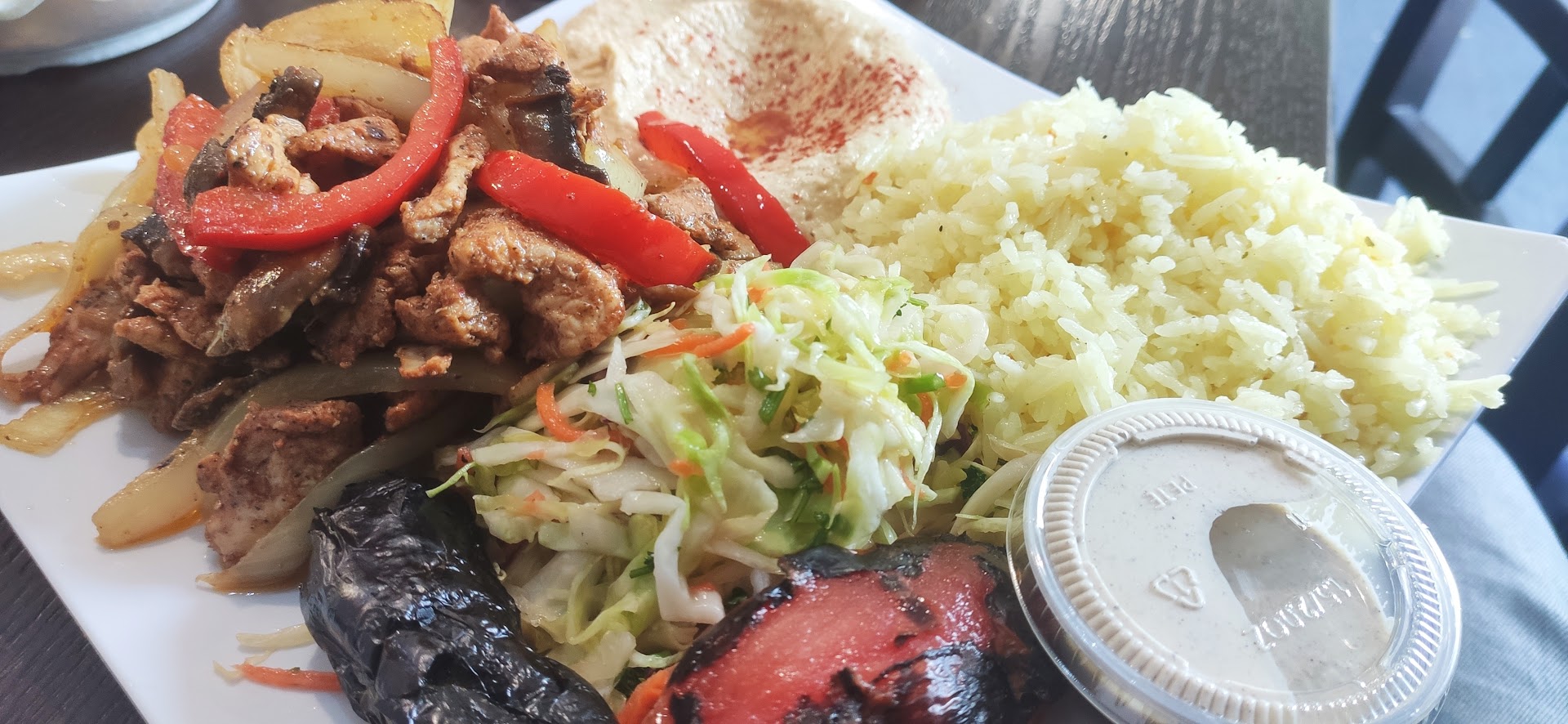 Read moreDisgusting, the hummus was bland and gritty, I've had better store bought hummus. The baba ganoush was overwhelmingly seasoned with smoked paprika to the point that it was all I tasted. The tabouli salad if I can describe it in one word it would be "YUCK" it reminded me of the pulp that is left over when I make my green juice. The falafel was cause for more disappointment as it was void of flavor and lacking in texture. The dolma was absolutely disgusting I would have been more satisfied with a Vlasic dill pickle the brined flavor was offensive and overshadowed any other flavors that was present. The most disappointing of all was ordering what appeared to be "based on the pictures on the menu" hand cut seasoned fries and receiving store bought frozen crinkle cut fries under cooked and unseasoned. If I didn't have to drive across town I would've got my money back for this poorly executed meal, considering the fact it ended up being thrown in the trash. On a positive note the rice was light and fluffy and rather tasty that's the one good thing I have to say about my visit to...