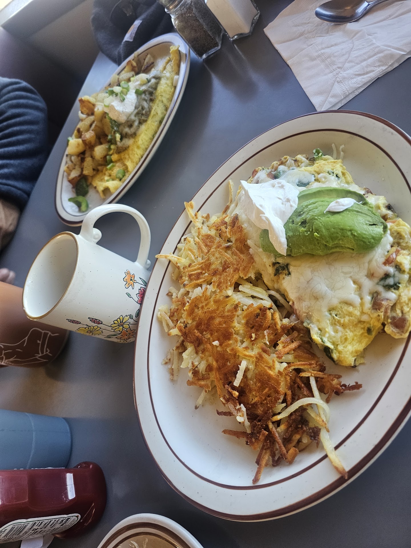 Third, THE FOOD WAS AMAZING!!! I've had many breakfasts in many places and this place quickly became top 3 all time. Great cup of coffee, Fantastic pancakes, Perfect Hashbrowns, Good Homefries, California Omelette was delicious TexMex Omelette was so flavorful.