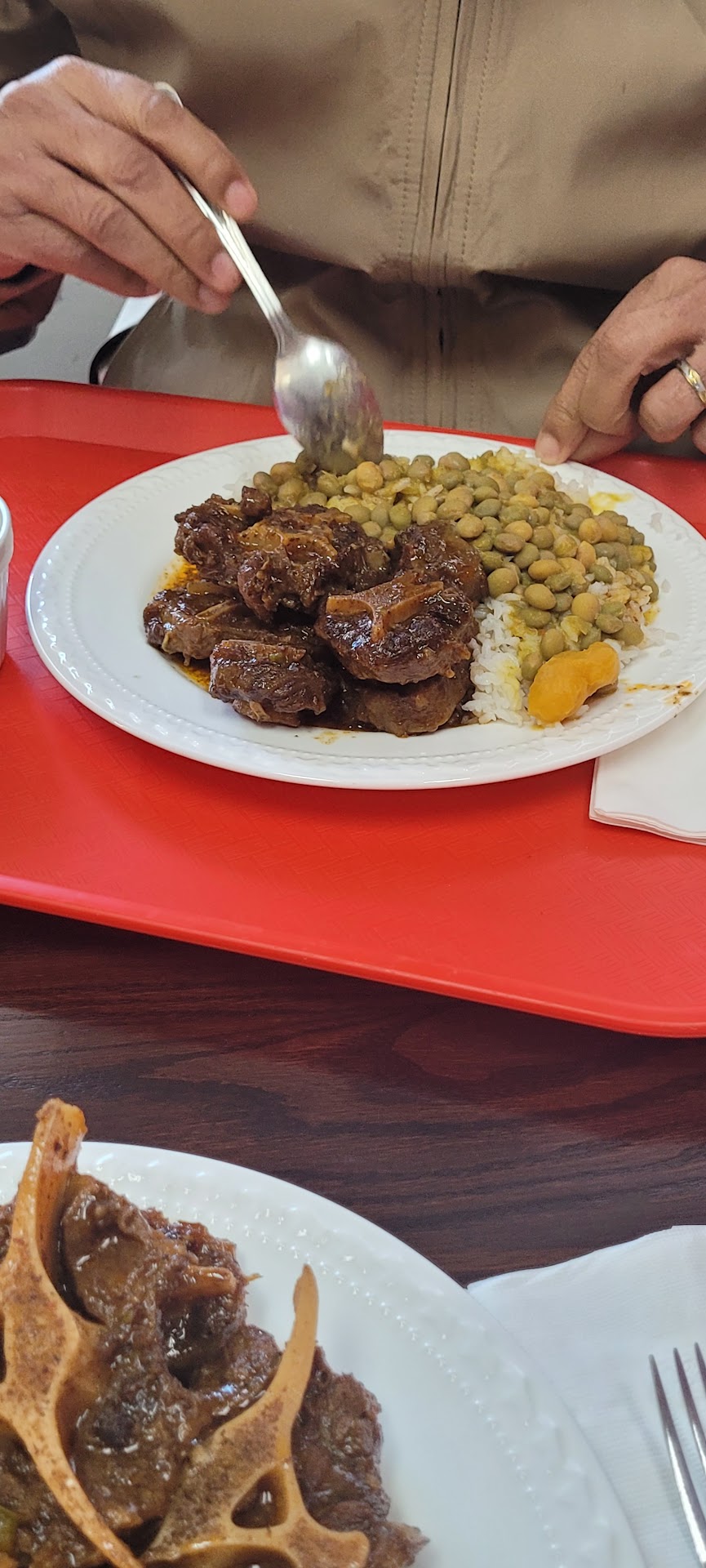 Pass this on my way home from work everyday and finally stopped in for lunch! We did take out, tried beans and rice with stewed pork, fried rice with stewed chicken, sea food salad, empanadas. Seafood salad was good but to expensive and did not match the prices on the menu. Empanadas would have been better if we ate there(we did takeout), The platters were a very large portion and reasonably priced in my opinion. Will go again to try the oxtails and goatâŠonly on Tuesdays and Wednesday I think they said.overall it was yummy:-). I forgot to take a pic...