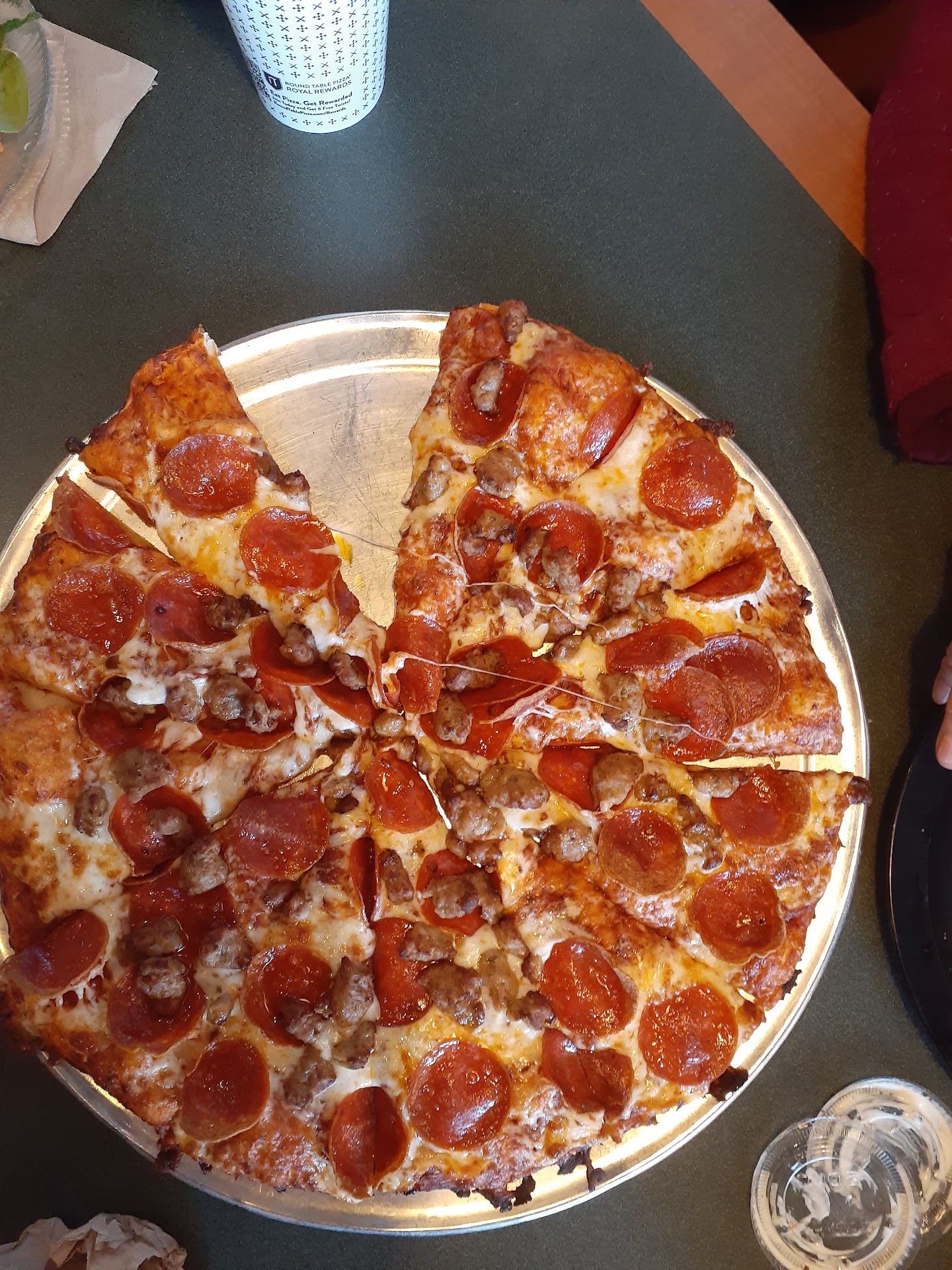 I’ve been eating at Round Table since the 70’s. My son, daughter, son in law, and his sister all worked at the Palmdale old spot when they were in High school in the 90’s. You’ve always had THE BEST PIZZA ever.your also only place that has linguisa! You cost more but worth it. I admit the past few years it hasen’t been as good。there was very little sauce, cheese or linguisa and I pay extra for more. Once I got 4 pieces on a personal! I was sad to see Palmdale store close. I haven’t been to Lancaster’s in quite a while, not because of Covid , because of quality. Now that being said…. I had a huge craving tonight and ordered a personal to go and I was so excited when I got home! It was THE BEST I’ve ever had!!! I did order extra sauce and meat but there was a lot more cheese than ever and it just made the pizza amazing! I hope you continue to do what you are doing and I am going to be coming back a lot more for sure.!!!!! . congratulations for being the pizza place it was back when my family worked there and I hope you don’t raise your prices, just keep doing what your doing and thank you!!!!!! I ate the entire personal pizza I rarely do, it’s great cold for breakfast! My...