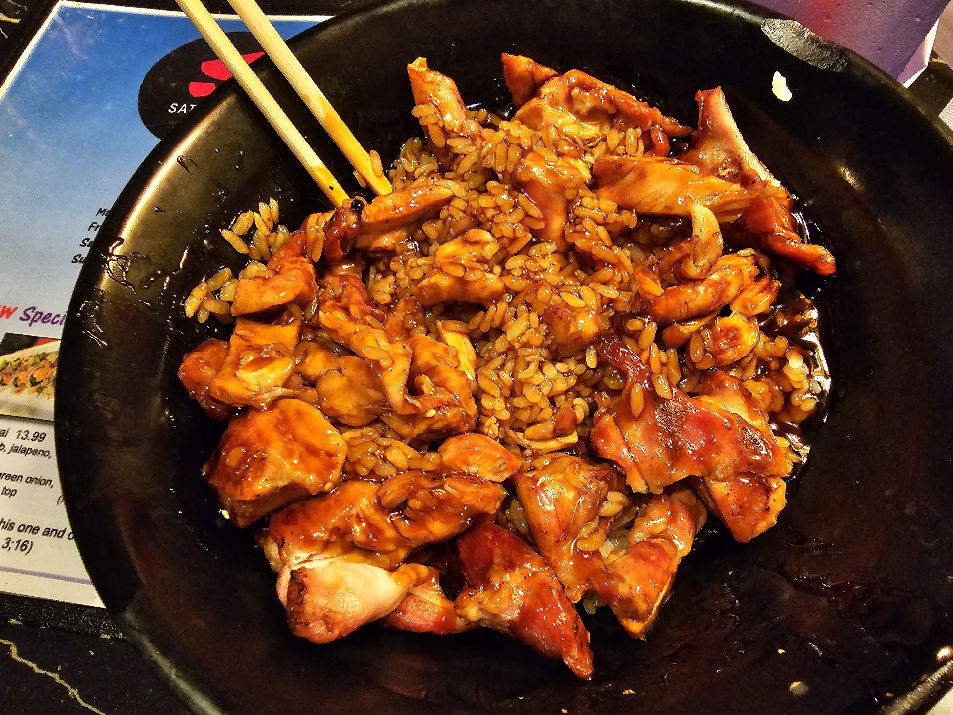 Right when we walked in we were told where to sit, but what was surprising is that we were waiting for about 10 minutes just to get a menu. Every single restaurant we've been to gives us a menu as soon as we sit down. This restaurant is the first that took a long time for the menu. The forks that were given were not washed properly, you can still see and feel the food on it, at the same time it was still wet. The cream cheese gyoza and the crunchy dragon sushi was lacking flavor. Then to top it off the chicken teriyaki dish i got was way too salty, the rice and the chicken was literally drowning in teriyaki sauce. I added a picture of the chicken drowning in teriyaki sauce, unfortunately its not really showing the actual details of how it really looks. I had to eat some of my husband's white rice to eat the chicken with since the rice in my bowl was drowning in teriyaki. The bulgogi my husband ordered was salty. The waiter was nice so that's why I gave 2 stars, otherwise i wouldve given 0 if i could. We were super hungry for dinner then to get food like that was very disappointing. Want to taste good legit sushi go to areas such as Santa Clarita, glendale, burbank, San...