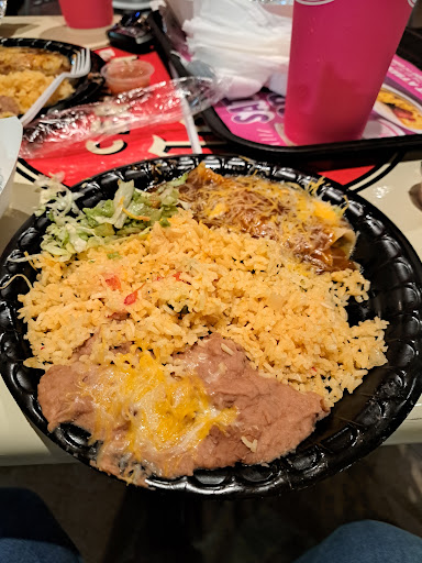 Read moreThis light skin lady with blonde/pink braids I'm guessing she is the manager. She was working the drive thru taking orders, taking payments, giving the food to customers way outside the window with gloves on both hands. Remember the gloves ok. When I pulled up I watched her with these same gloves handle large burrito size tortillas. She placed them on the grill. She continued to get other orders ready. With those same gloves she made the burritos. She stuck her right hand in whatever toppings to put on the burrito. She then answered her cell phone with that same gloved hand and placed the phone up to her ear to talk. She used her shoulder to steady the phone while she continued. Once the call ended she used that same gloved hand to put her cell phone back in her pocket. She finished the burritos folded it em all nice in that foil wrapping it comes in....order was ready. I'm still waiting for someone to come get my payment. I was hoping it was her so I could tell her to change those gloves. Unfortunately she didn't. With that same gloved hand she handed her headset to a Hispanic guy who was taking over the drive thru window...with them same dang on gloves on. NASTY AND THEY KNOW BETTER. I get they may have been short staffed because I was in that line well over 30mins but that does not give them reason to not be cautious with handling folks food. Change your gloves or let one person handle the drive thru etc not both unless you change those gloves. I got 2 enchiladas plates and an order of flauntas that she didn't fix thank you God. The food was good but the wait was too long. Those young folks in there were moving close to...