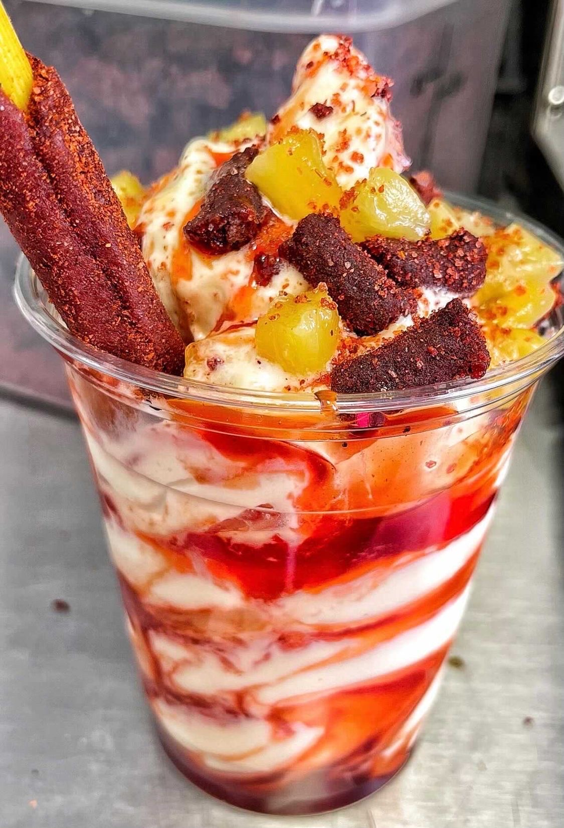 The big prize though is the "Piña Superior" drink which is like a Dole Pineapple ice cream whip (think Disneyland at the Tiki house for the fans) but with real pineapple chunks, some red syrup (maybe strawberry?) and Mexican spicy candies inside. WOW! Definitely worth the price and a solid comeback from me even if it would be just for that!