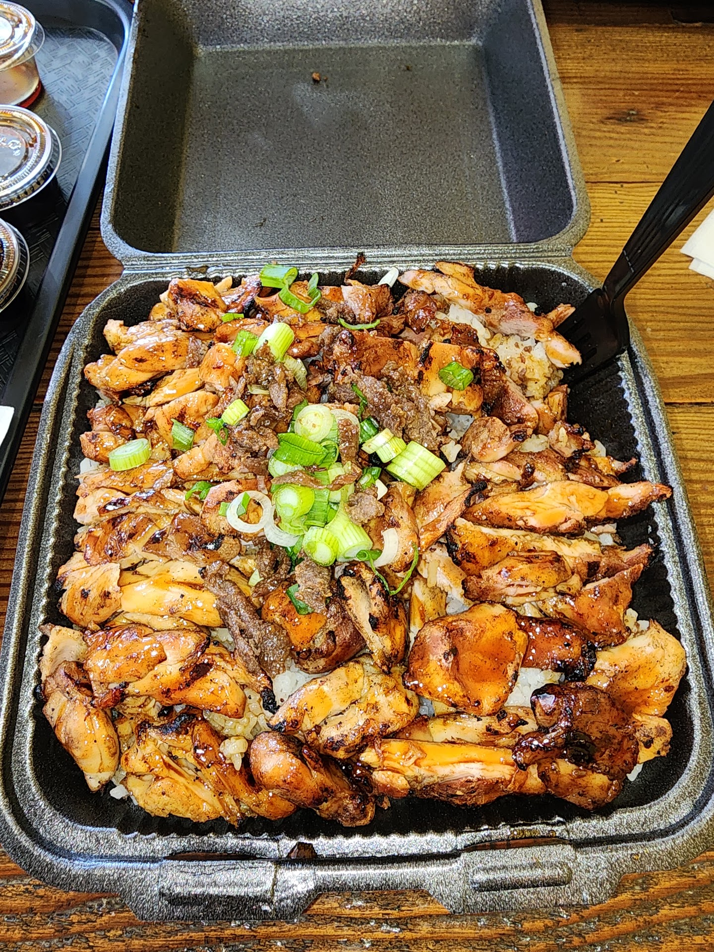 Read moreTwo Words: I'M OBSESSED!!! This place is amazing! Personally I'm not a fan of Oriental or Asian cuisine but this place blew my mind. The teriyaki sauce is delicious, the way the beef and chicken is cooked for the bowls is absolutely mouth watering. I'm also not a big fan of "meaty" taste but the way they cook the meat here is incredibly delicious. It's tender, flavorful, and has no "odd parts" like tendons/cartilage/fat. The meat is cut into nice slices and the rice is cooked to perfection. I've been there about 3-4 times and have never been disappointed. I only get the large chicken bowl, large beef bowl, and large chicken& beef bowl. The amount of meat they give you is well worth the money and the portions are generous. I highly recommend this place if you love this type of food and even if you don't. My only complaint is I WISH THEY WERE OPEN LATER AT...