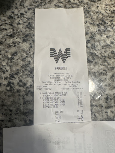 Read moreHello my name is Melba l came to this terrible location 8/19/2018 @ 5:05 pm l ordered a #1 and whata chicken bites combo for my son Dennis which turn 9 that day so decided to stop @ Whata burgers for his birthday....Jamie the order taker was very rude she rushed my oreder as l was asking my son what he wanted....so that wasn't enough l paid almost $20 for two orders to wait 17min in the drive way...l get our orders believing to be correct and the fries are not fresh as asked when ordered my son bites fried so hard their almost burnt and very small from being overly cooked. Drinks where watered down as is they added water...so l drive off take a bite of my burger to notice my lettuce brown not fresh tomatoes on my burger which lm allergic to and no CHEESE...so l go back thru drive only to speak with the manger Mariah which works the window laughs as l asked for cheese and a manager...as a present Leader of the Grill at whata Burger which l happen to use to be the service was terribly bad and manager on shift was more afraid of his shift to correct that at the moment....he should have a apologized fixed my oreder which he DID NOT he allows these same employees's that messed up my order and laugh in my face to do so!! PLEASE DONT VISIT THIS RUDEST WHATA BURGER IVI' EVER HAD...