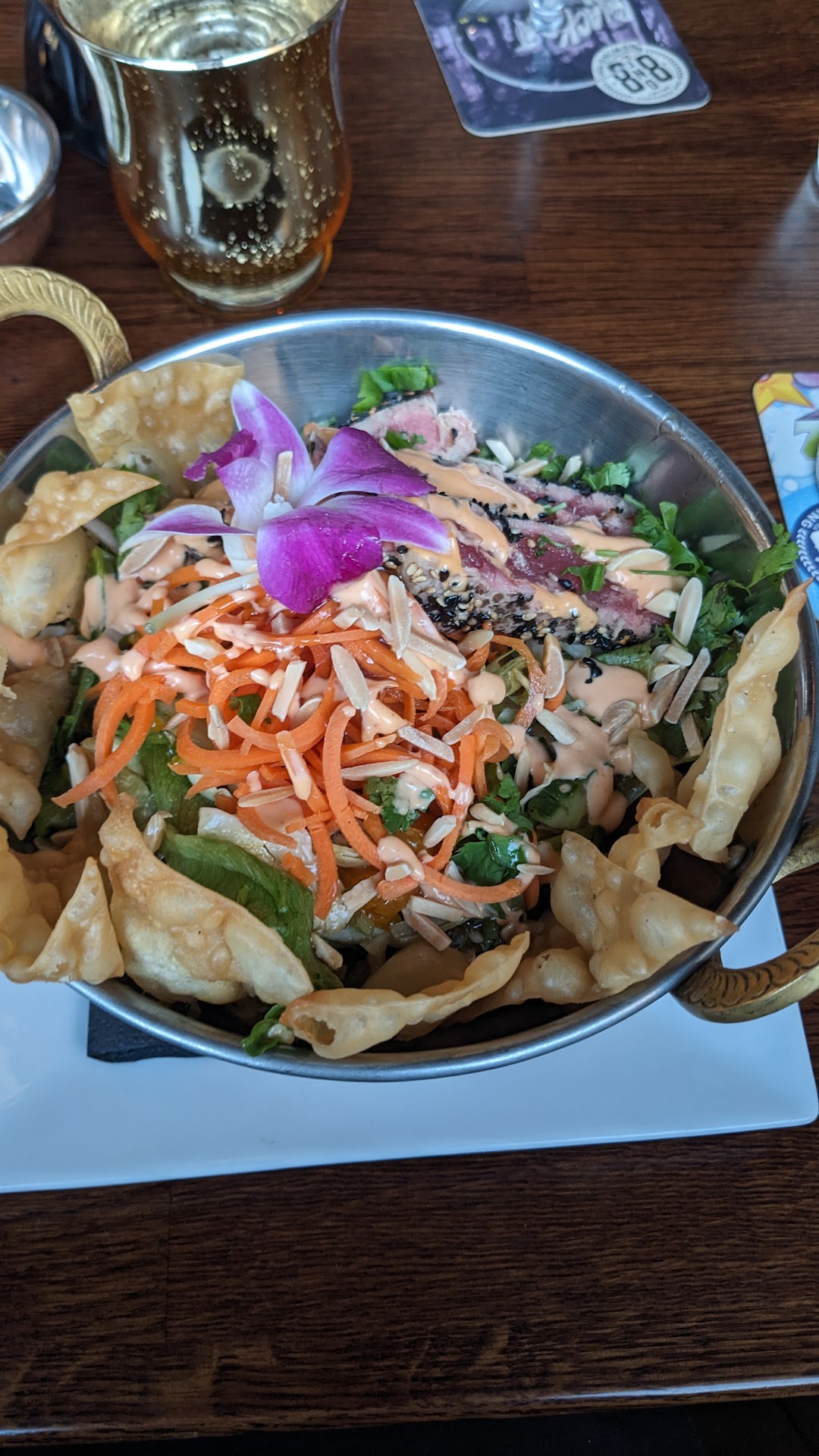 Read moreWent for the first time to a "Tiki Takeover" on Saturday evening. Cover charge $10 pp was reasonable. Outdoor seating was very limited, I cannot begin to express how frustrating that would be to pay and not even have a seat. We managed a 2 top table - if we were even 10 minutes later, we would have been standing- we asked if we could get an additional chair for a friend who came later and was told they would work on it but that never happened. About 20 people were left standing. Entertainment was 10/10. I told our waitress I do not est onions or anything with onions, and she said we can ask for it without onions. I said great and if they cannot accommodate that, I would order something else. We ate hawaiian sliders and fries - excellent 10/10; shrimp and pineapple skewers -8/10 shrimp didn't taste fresh at all, but the sauce was delicious. I was considering their lemon dessert. The problem with food was with the Hot Honey pizza I ordered around 8/8:30 - there was still good daylight when I ordered so likely closer to 8. Long story short, I ended up asking to cancel the pizza and settle my tab at 9:50. Waitress brings out my tab and the pizza boxed at 9:53. She tells me she just charged me $10 (took $ 7 off the bill). I came home and the pizza has long strips of onion throughout. I ended up throwing it out. What could have been a fun night was one with frustrations. Our whole tab was $70.33 which isn't too bad, IF I JUST HADN'T ORDERED THAT BLASTED PIZZA OF...