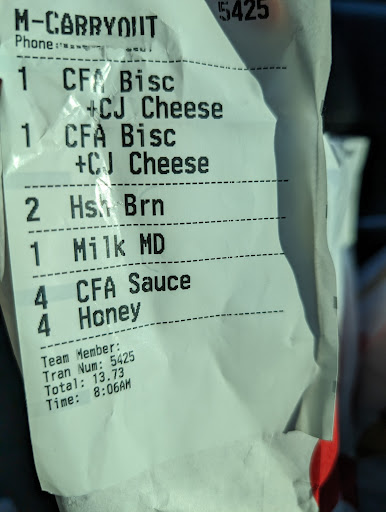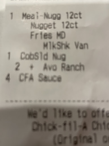 Read moreWow what a horrible experience. We visited chick fila tonight for a late night dinner and they messed up our order, which we had a large order so it was an honest mistake. We ordered four chicken sandwiches and only received THREE of them. We were also missing a large mac and cheese as well, which after looking at the receipt was not rung in by the person taking our order so we just left it (there was a lot of people talking in the car so again honest mistake). It was only when we got home when we noticed, and thankfully I live close so we returned to the establishment. It was then when we went back through the drive through and the manager stated “she packed the order herself and she put all of the sandwiches in there.” We brought the receipt as proof of purchase, but apparently “we were not missing anything.” Now why would I lie and then return after paying $67!!! Not only did she accuse us of lying but was very RUDE when it could have just been an easy fix. I should have just asked for a refund for these items after being accused because all of our food was cold when we...