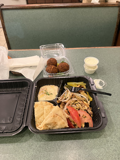 After waiting an extensive amount of time for my meal , I noticed they don't put enough rice on their platters. It had more onions and peppers than anything , but it was all plated very nicely. Also, the hummus was very bland. The beef kabob consisted of pieces that were extremely chewy and hard to eat, and tender pieces cooked correctly. Nothing stood out except the french fries and their falafel, which were both cooked deliciously. I did feel rushed as I ate, since they closed 1 hr 1/2 earlier than their usual time that day.