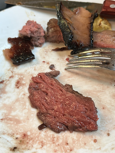 Finally, the nail in the coffin... the meat. What an incredible disappointment! There was absolutely no consistency in preparation, portion size, or temperature. Some was incredibly salty and some was bland. One thing almost all the meats had in common was that they were dry. We'd ask for medium doneness and it would be gray. They don't care as long as they're slicing meat and getting paid.