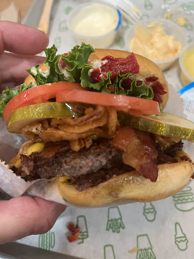 I ordered the SmokeShack burger, and it completely blew me away. The juicy Angus beef patty was cooked to perfection—tender, flavorful, and seared with that signature Shake Shack crust. But the real star was the combination of the smoky bacon and the cherry pepper relish. The bacon added a savory crunch, while the peppers gave just the right kick of heat and tang to cut through the richness. Topped with gooey melted cheese and that famous ShackSauce, every bite was layered with flavor. It’s the kind of burger you remember.