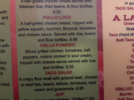 Read moreI have lived in the area for four years and never tried this place until today and now I know why. The salsa is basically ground up probably canned tomatoes. I ordered the California burrito which was supposed to have rice and beans, onions and steak in it however it only had a few grains of rice and no beans. I asked for some pico de gallo and they brought it out to me in a scorching hot bowl. When my food came out I was asked if I wanted the guacamole that came with the meal and they brought it out in a bowl that was broken and chipped in several places The steak was very tough. I'm not sure why people would eat there other than it is the only Mexican restaurant around. I guess some people like it that way, I'm just not...