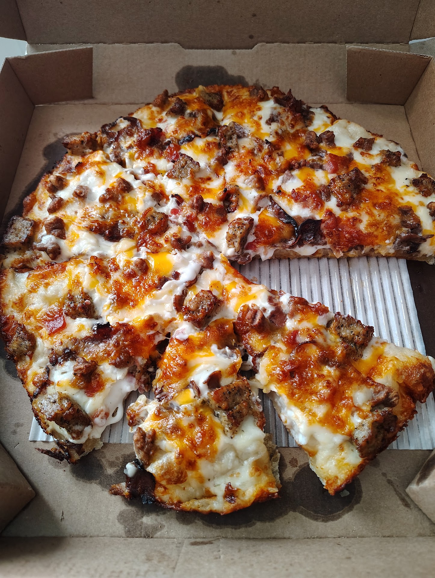 Ā Ā Ā Read morethe food is fine sometimes, but i also get dried sauce, hard crust, and flat soda. iāve normally never had a real bad experience, but this time, is the last time i will order from here. i called in around 8ish, pushing 9, and was on the phone for 15 minutes talking to someone who doesnāt even take orders, he was a driver. that didnāt bother me as much as the fact that he told me ā52-62 minutesā for a small order.... but what really got me going was the fact that 3 HOURS Later i still hadnāt received my delivery. so i called back. and the other man, a much more understanding, reasonable man, told me that they could either put the money we paid on credit, or remake the order. we had the order remade. but he also said that the man before who took the order tried calling back. he did not. i donāt just miss phone calls, iāve never missed a phone call, and thatās that. my phone wonāt shut up until...