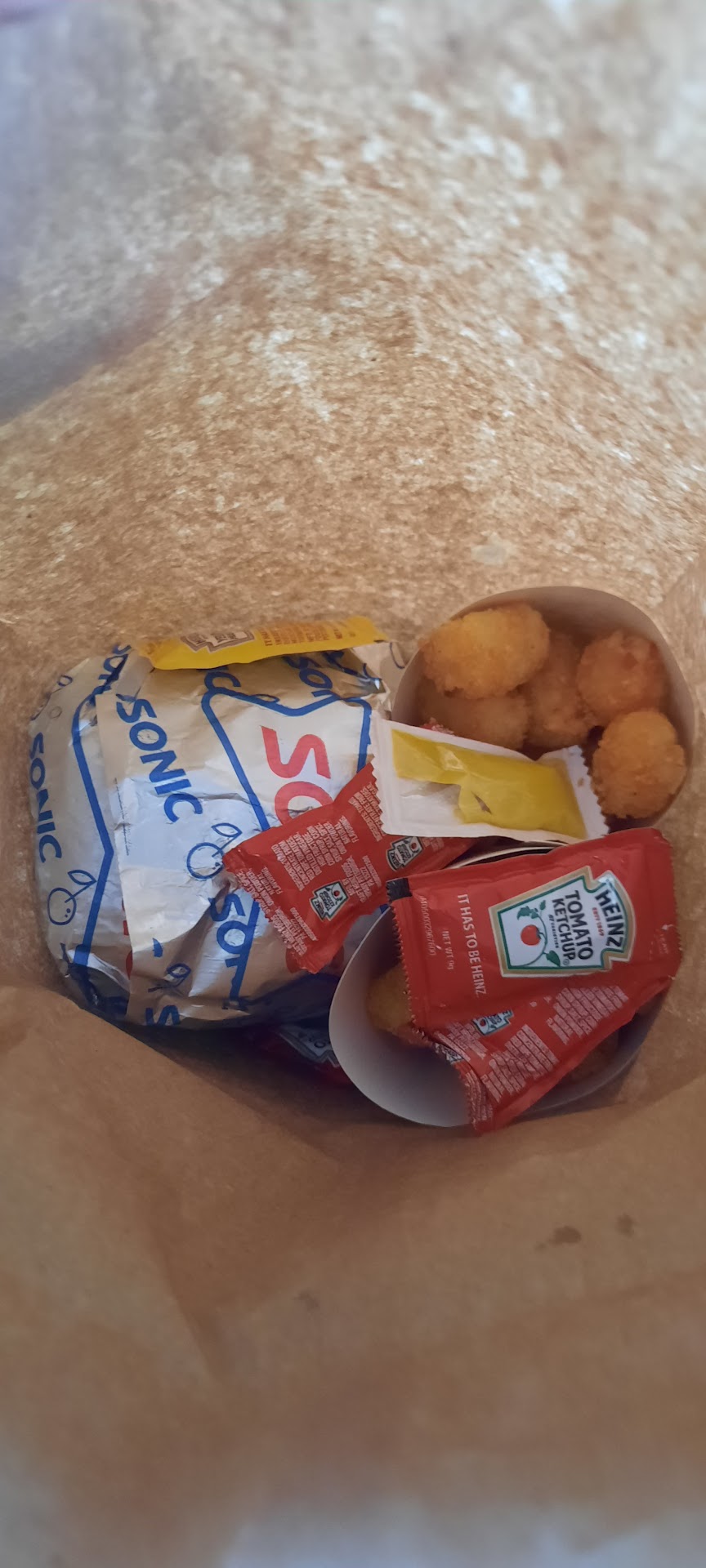 My 8 year old son loves Sonic so when I passed by this location he made me promise to stop on our way back home since we weren't from this city & a long way from home. The lady on the headset had us repeat the order at least 3 times as she said she couldn't hear in her headset so she walked out to the car & directly took the order. It took at least 20 to 25 minutes to finally get the food out to us. I looked in the bag & my order had tater tots but I specifically asked for French fries because my son & I both hate tater tots (she took the order standing in my face but still wrote it incorrectly) so this took another 5 or 10 minutes to correct just for French fries... Imagine my frustration with a hungry 8 year old with ADHD in the backseat... I gave the lady my debit card to pay for the order & she took my card and walked off to another vehicle handing out food... Who does that?? Swipe my card & give it back... She finally gets back to my car 5 minutes later & drops my card on the ground and instead of picking it up like a normal person, she scooted my card on the gritty ground with her foot & now my debit card is all smudged & scratched up on the back... This is my first & last time coming to this particular Sonic... Worst experience I...