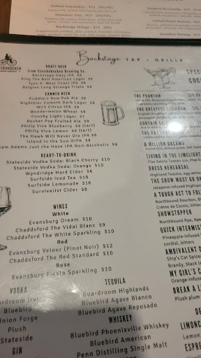 Ww love a greal local dining experience for happy hour, breakfast and dinner. This was our first night here. Shout out to Devyn(hopefully spelled correctly) for providing amazing service from the moment we sat down. I will always give an honest review when we love the food, drinks and service. The interior is inviting with a cozy pub feel. .The bar is spacious and filled tge entire time we were there. We dined in with reservations. Reservations are recommended. The appetizer menu offers multiple options for all dietary. We had the wings and roast pork egg rolls. Wings 10/10 crispy and coated with a sweet and savory sauce, , egg rolls were crispy, not greasy, the roast pork was seasoned. 10/10. The options are plentiful for entrees. There are handheld, salads, entrees. I wanted something light so I ordered the Backstage chicken sandwich comes w smoked bacon, frizzzled onions, arugula, tomato, bbq sauce and cheddar cheese on a brioche bun. The grilled chicken not dry. Every bite was packed with flavor. I am usually disappointed with homemade chips because they're usually overcooked and burnt. I took a chance and these chips were perfectly cooked and seasoned. Our other entree short rib, mashed potatoes and asparagus.. 10/10 short rib was tender, well-swasojed, mash got rave reviews. For we ordered a glass of Rose and A Tough to follow cocktail w bourbon and whiskey. Other alcoholic beverages includes canned beer, soda, cider, lemonade and iced tea, selection of wines, vodka, tequila, and speciality cocktails. All of the speciality cocktails names are show titles or theater related phrases. There are dessert cocktails and mocktails. Cocktsils are reasonably priced. The restaurant sources ingredients locally and the spirits from Blue Bird. We passed on dessert included cheesecake, tiranusu, chocolate lava cake. Definitely, will return. Thanks Deyn for adding more chips to my...
