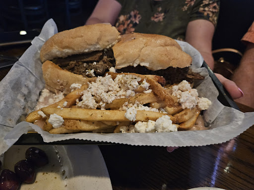 Let me tell you, fellow diners, I would have been happy with just appetizers! The tzatziki was the most flavorful I've ever had. The feta was delicious, and the asparagus was an absolute flavorful delight!! I don't like asparagus as a general rule, but when they wrapped it in batter and deep-fried it, it changed it! The deep, flavored tones of the asparagus were complimented by the batter. It was a deep, smokey treat that should be savored slowly, like a good cigar!!! We all got a different sandwich. Mine was the chicken Philly. It was flavorful, with a generous portion of everything. I got the Greek fries. Thinking about them, right now, my mouth is watering! I don't remember which sandwiches everyone got, but hubbs chili fries were loaded with chili. The bar itself is a wonderful old place. It's a nice size, plenty of seating, and it didn't feel pretentious. Idk why I noticed, but the wood floors reminded me of an old dance hall from when I was a kid. Our waitress was good. She kept hubbs beer full and kept the plates cleared. Also felt safe leaving. There was a heavy police presence outside and behind Steakhouse Phillys while we were there dining... (we didn't get there until 8:30 pm). This is only a few miles away from my job, so it'll be easy to get a quick lunch...